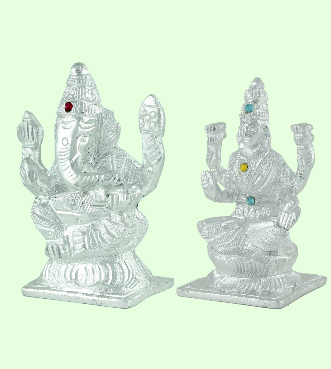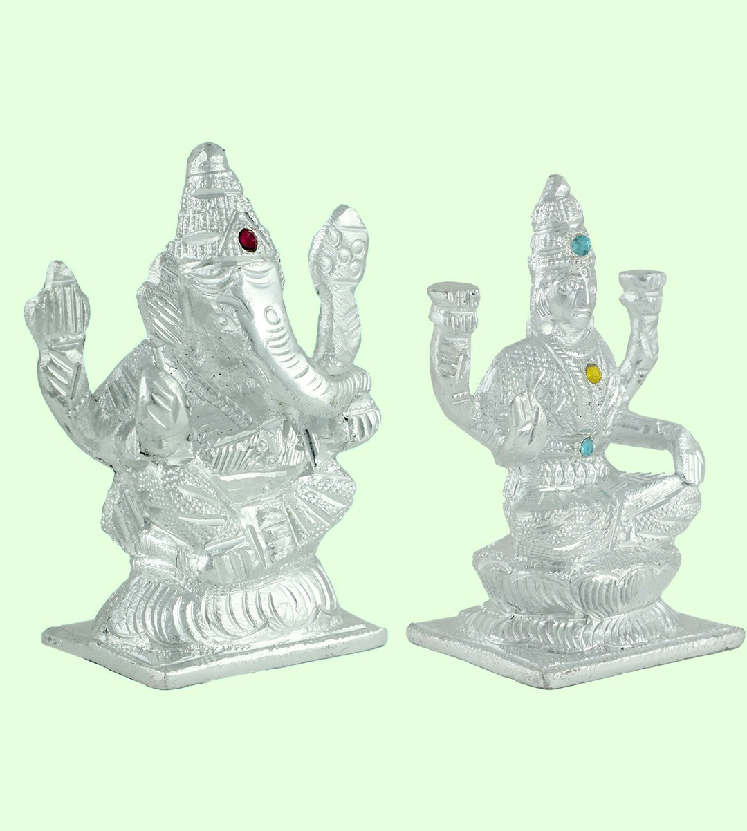 Beautiful Handcrafted Hindu God Goddess Set of Lord Ganesha and Lakshmi Maa.It is handmade only in India. Gorgeous handwork and perfect showpiece of Indian Handicrafts. Beautiful Puja Idol for home & office religious and spritual idols showpieces placed in home office drawing room, living room & pooja room which brings wealth, health, peace, happiness. It can be gifted as spiritual lucky gift, thanksgiving gift, anniversary gift, diwali gifts, birthday gift, wedding gift etc.