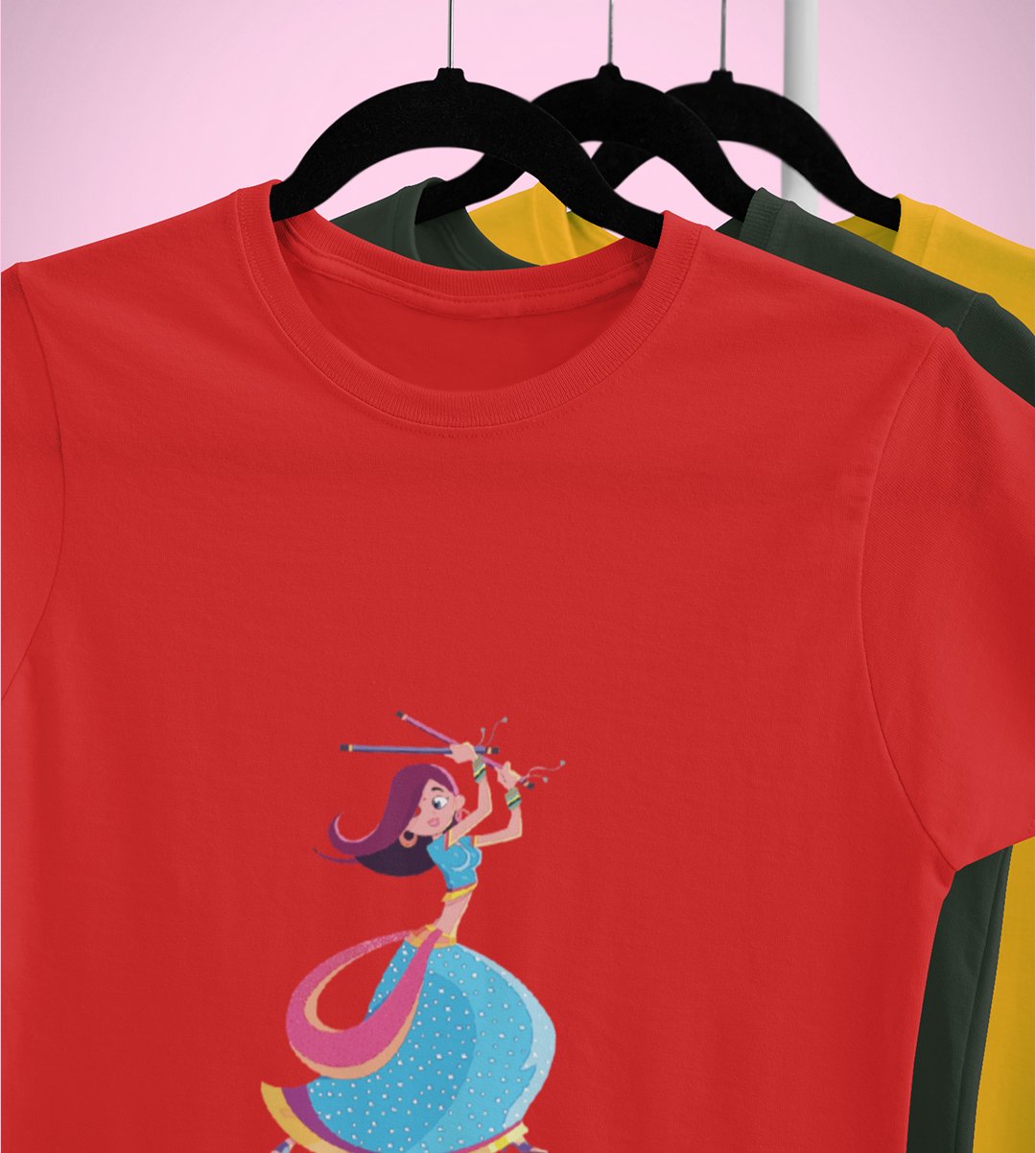 Navratri is a very auspicious festival for hindus. It takes place at the beginning of October and sometimes September. Enjoy the 9 days of festivities with full zeal and make yourself submerged in the love of Maa Durga. Navratri is also known as Durga Puja. And with this Tees, you can shine like a star during this festive season with our navratri themed cotton half sleeved Tshirts. You can pair our t-shirts with trousers and denim of your choice and make it a weekday smart casual or weekend wear. This is durable. This tshirt is smooth and soft which makes you comfortable to wear during all seasons. The printing in it is durable and odourless. It has five sizes, S,M,L,XL,XXL. The Tshirt colour is intact even after repeated washes. It can be kept in your wardrobe and hangers. Please avoid washing mashine to clean this Tee, it may affect the print. Hand wash only. We have brought you many navratri related designs printed on our different colour Tshirts to choose from. Grab it now.
