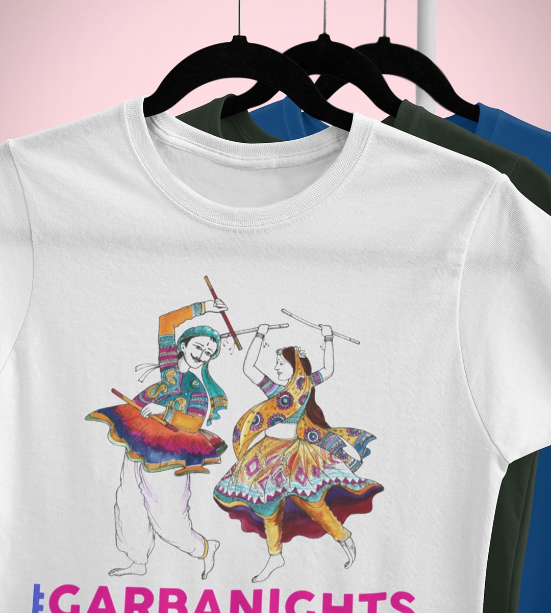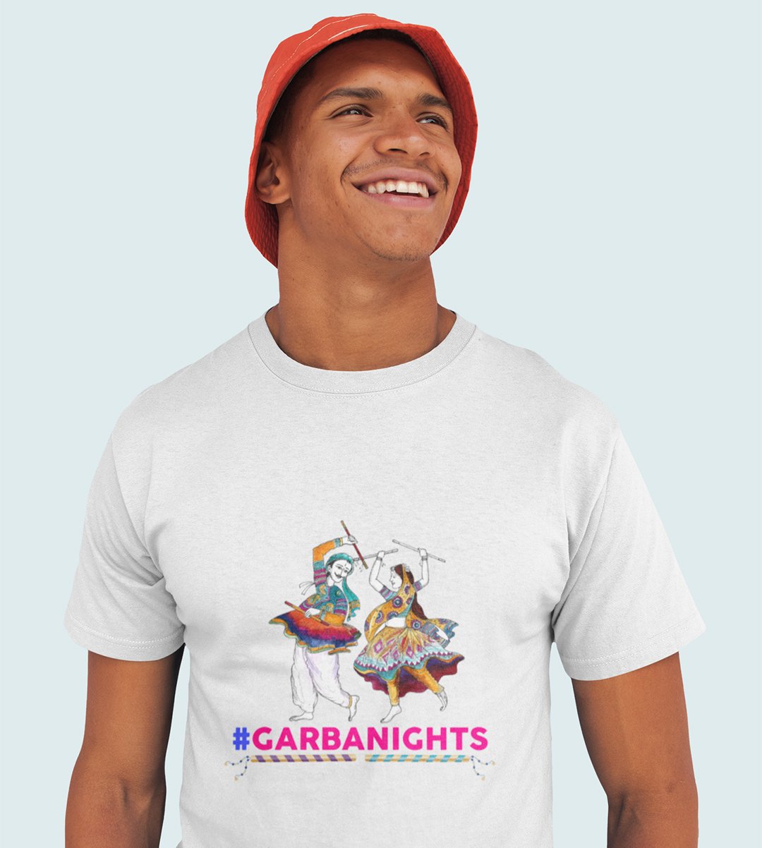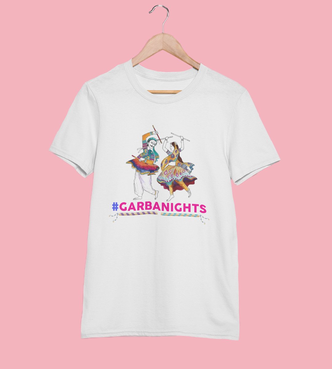 Garba nighta text printed unisex adults round neck cotton half-sleeve white tshirt specially for Navratri festival/ Durga puja