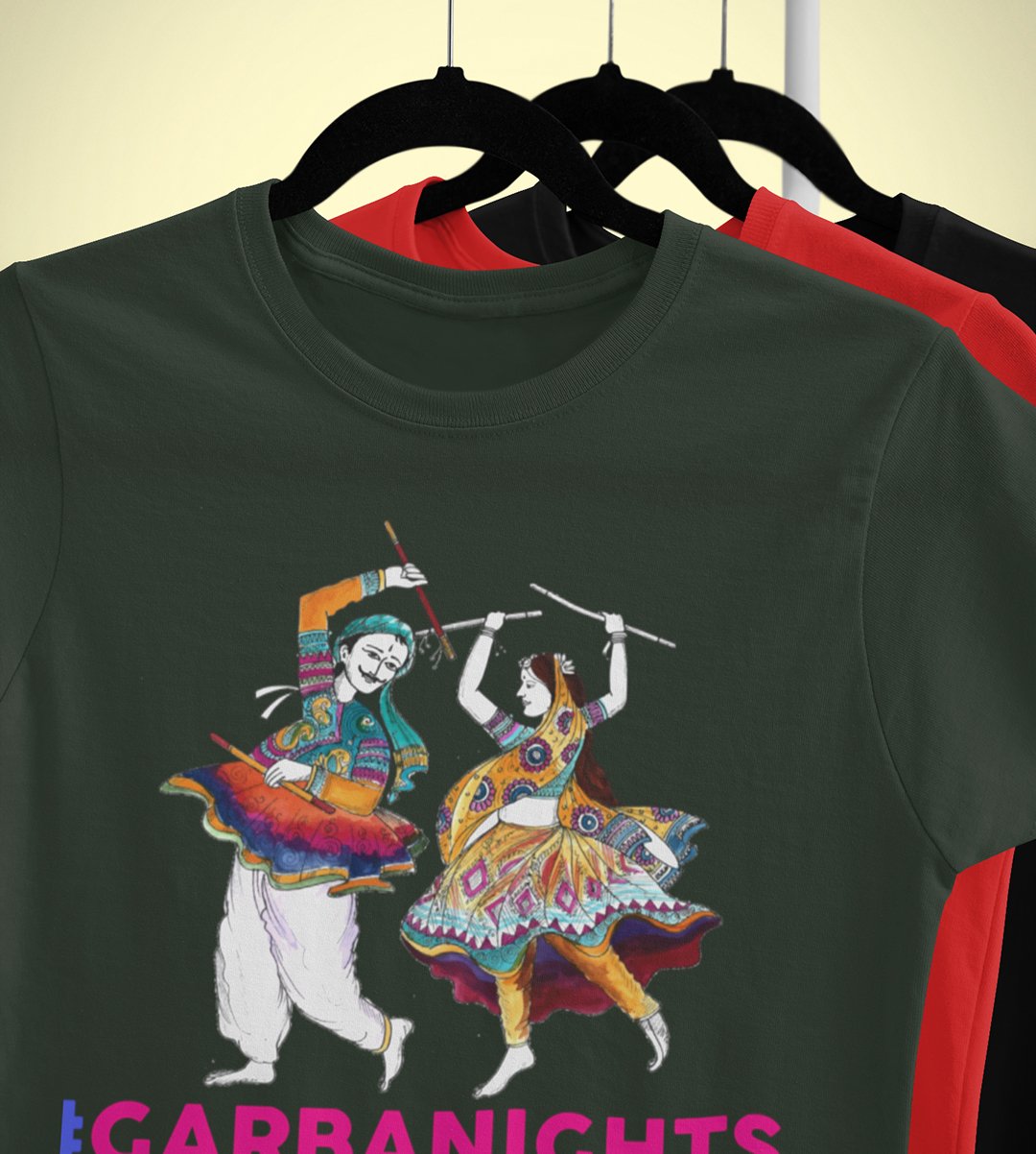 Garba Nights printed unisex adults round neck cotton half-sleeve green tshirt specially for Navratri festival/ Durga puja