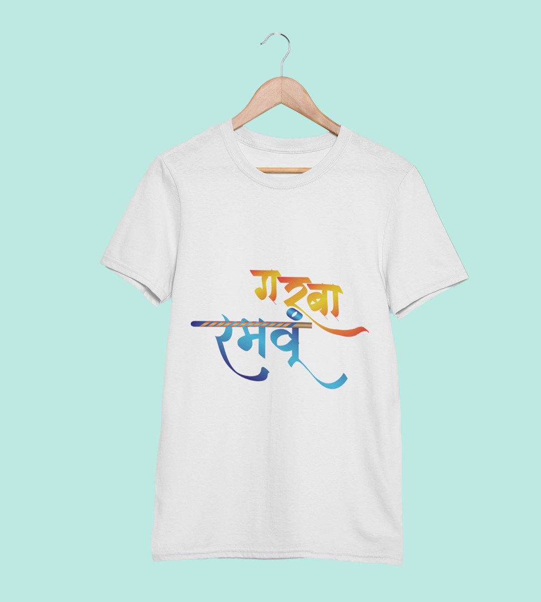 Garba Ramba text printed unisex adults round neck cotton half-sleeve white tshirt specially for Navratri festival/ Durga puja