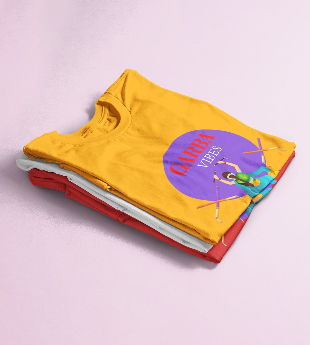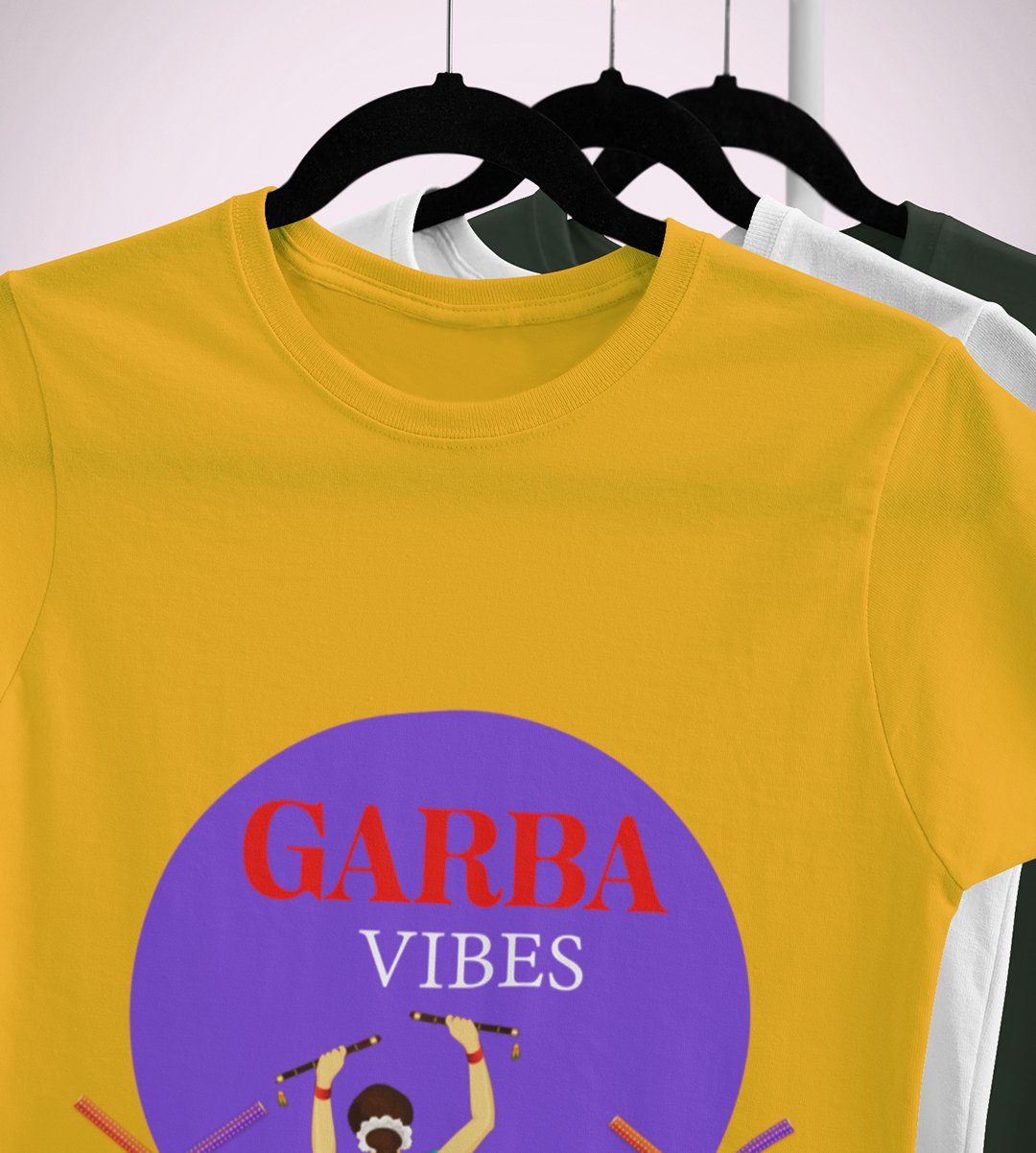 Garba vibes printed unisex adults round neck cotton half-sleeve yellow tshirt specially for Navratri festival/ Durga puja