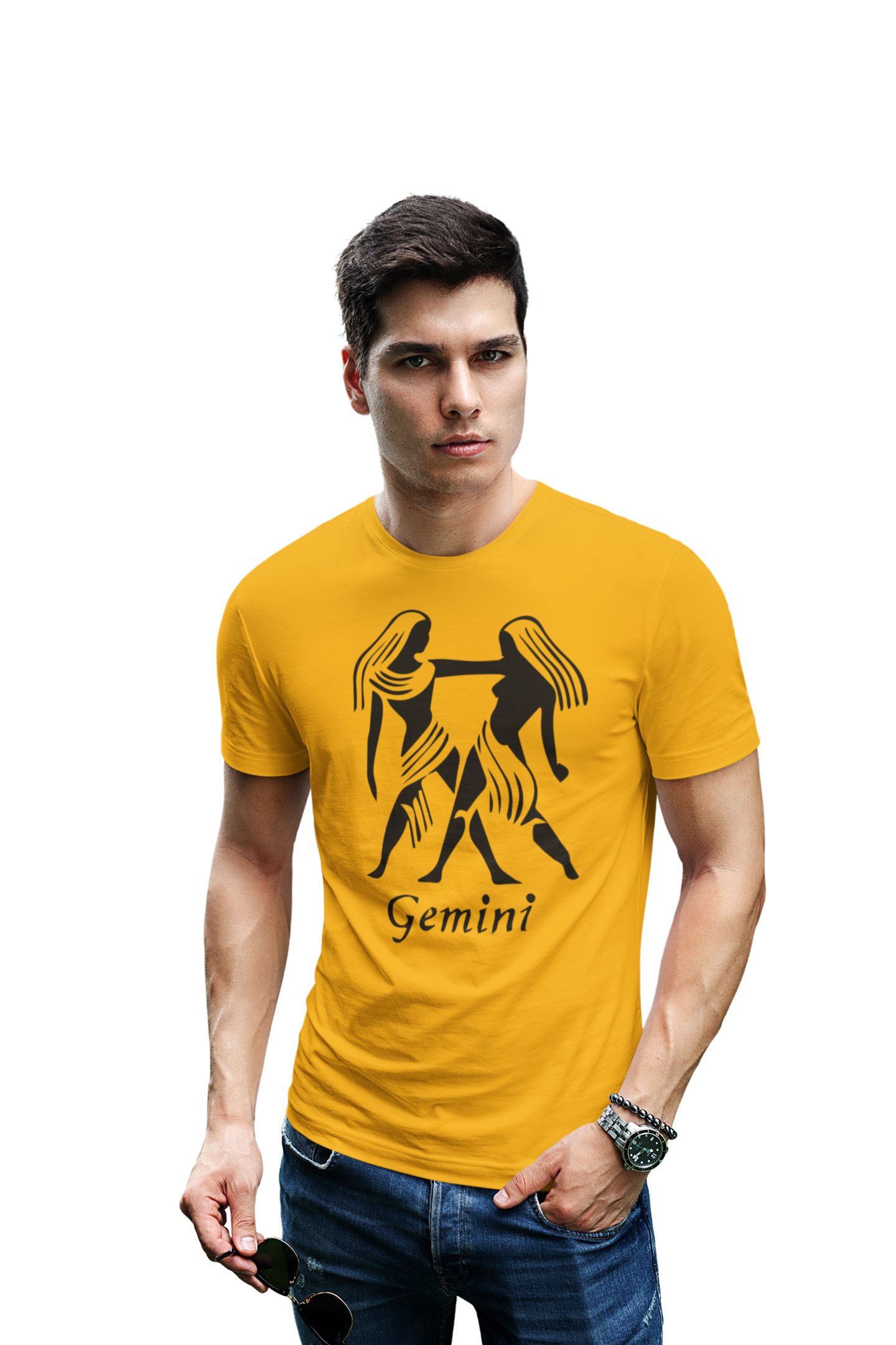 Gemini (BG Black) (Yellow T) - Printed Zodiac Sign Tshirts - Made especially for astrology lovers people