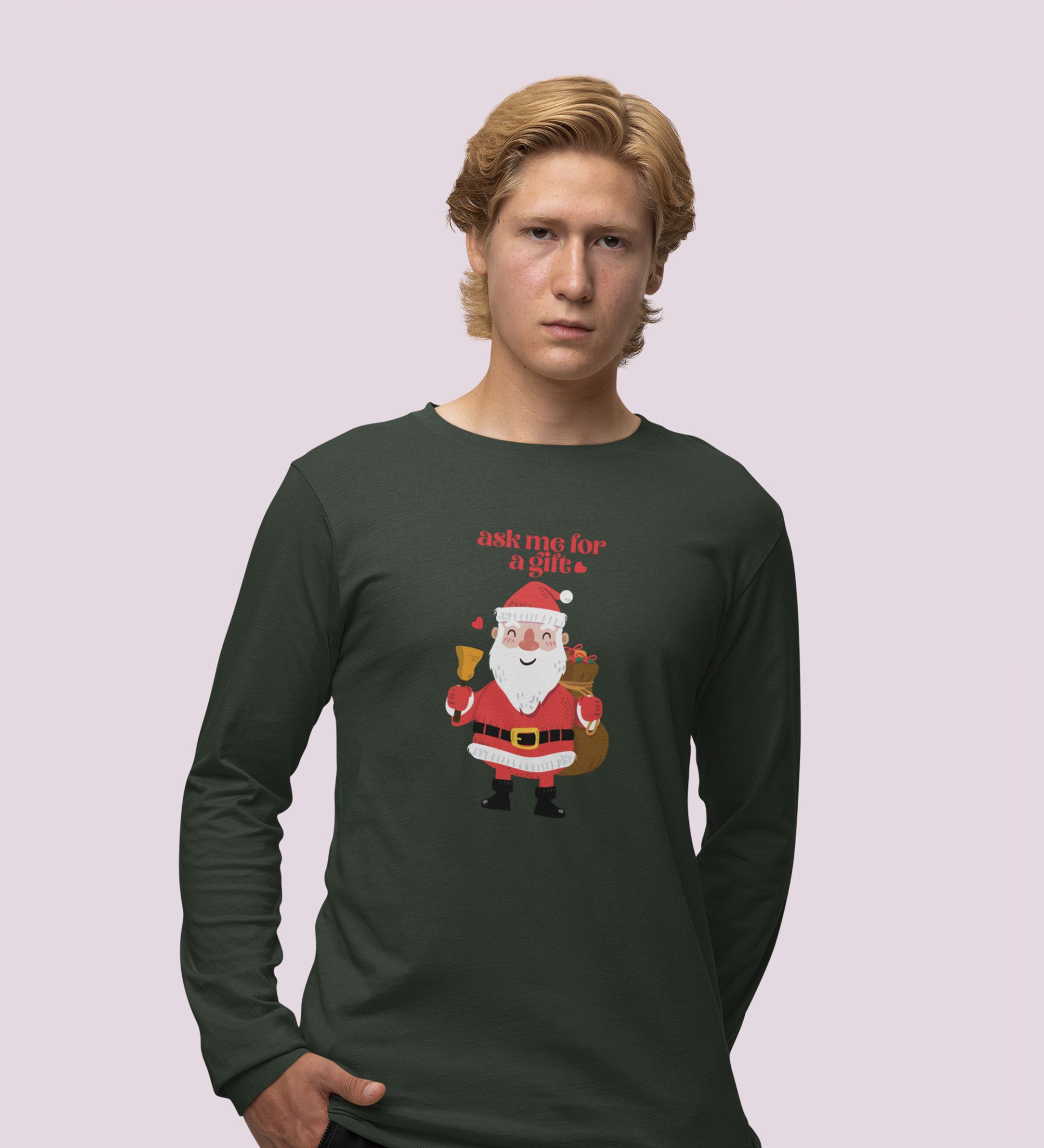 Generous Santa: Elegantly DesignedFull Sleeve T-shirt Green Best Gift For Boys Girls