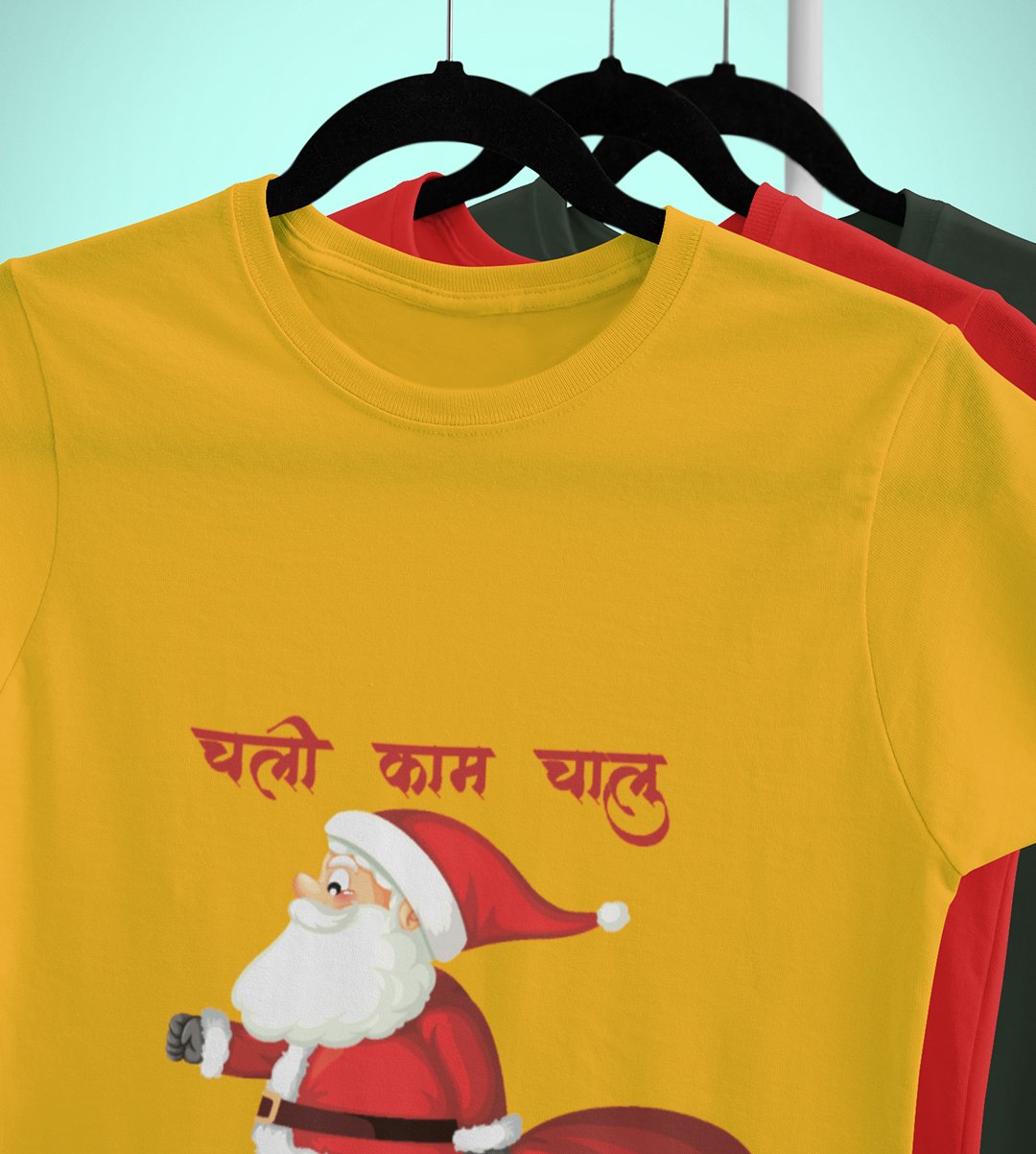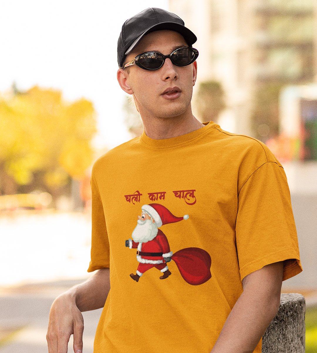 Get Back To Work Santa : Hydrate Festively with(Yellow) T-shirt - Leak-Proof, Marathi Printed Printed