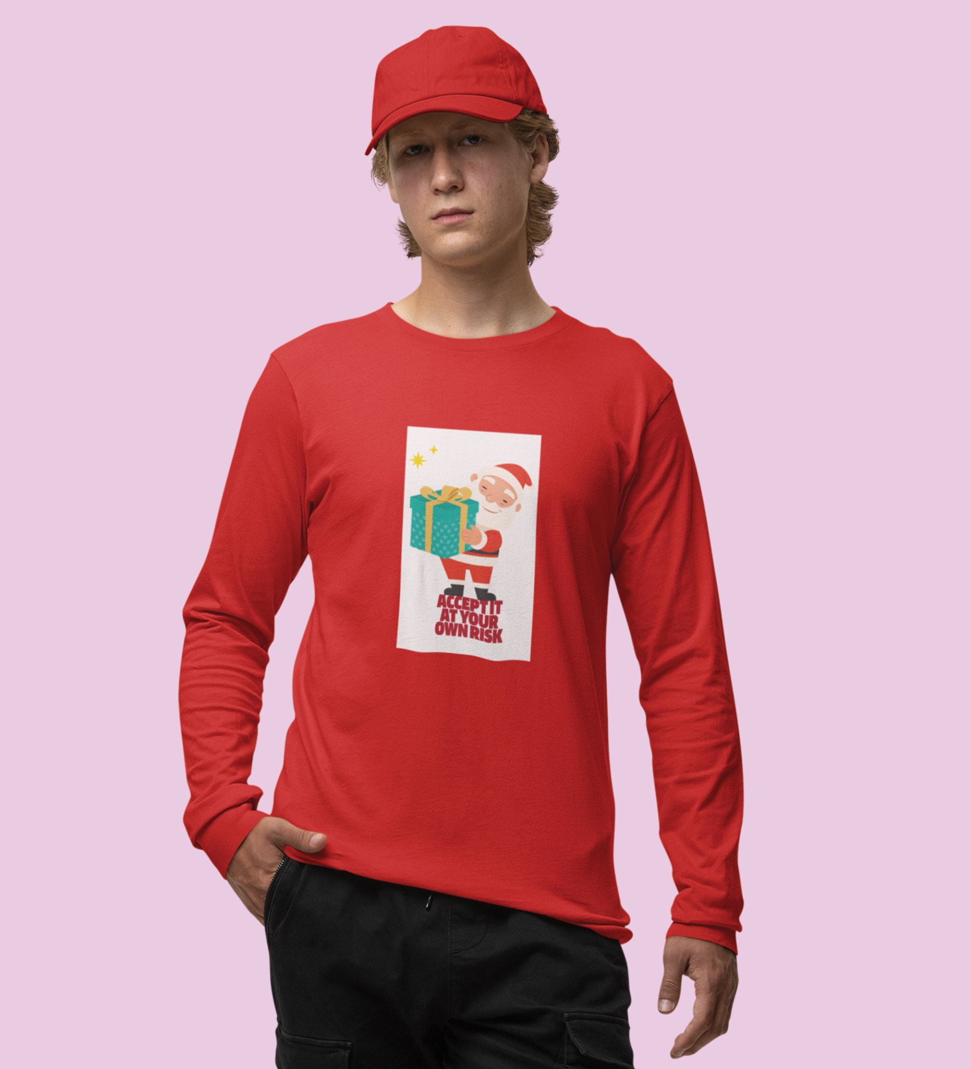 Gift Man Santa: Perfectly DesignedFull Sleeve T-shirt Red Best Gift For Boys Girls