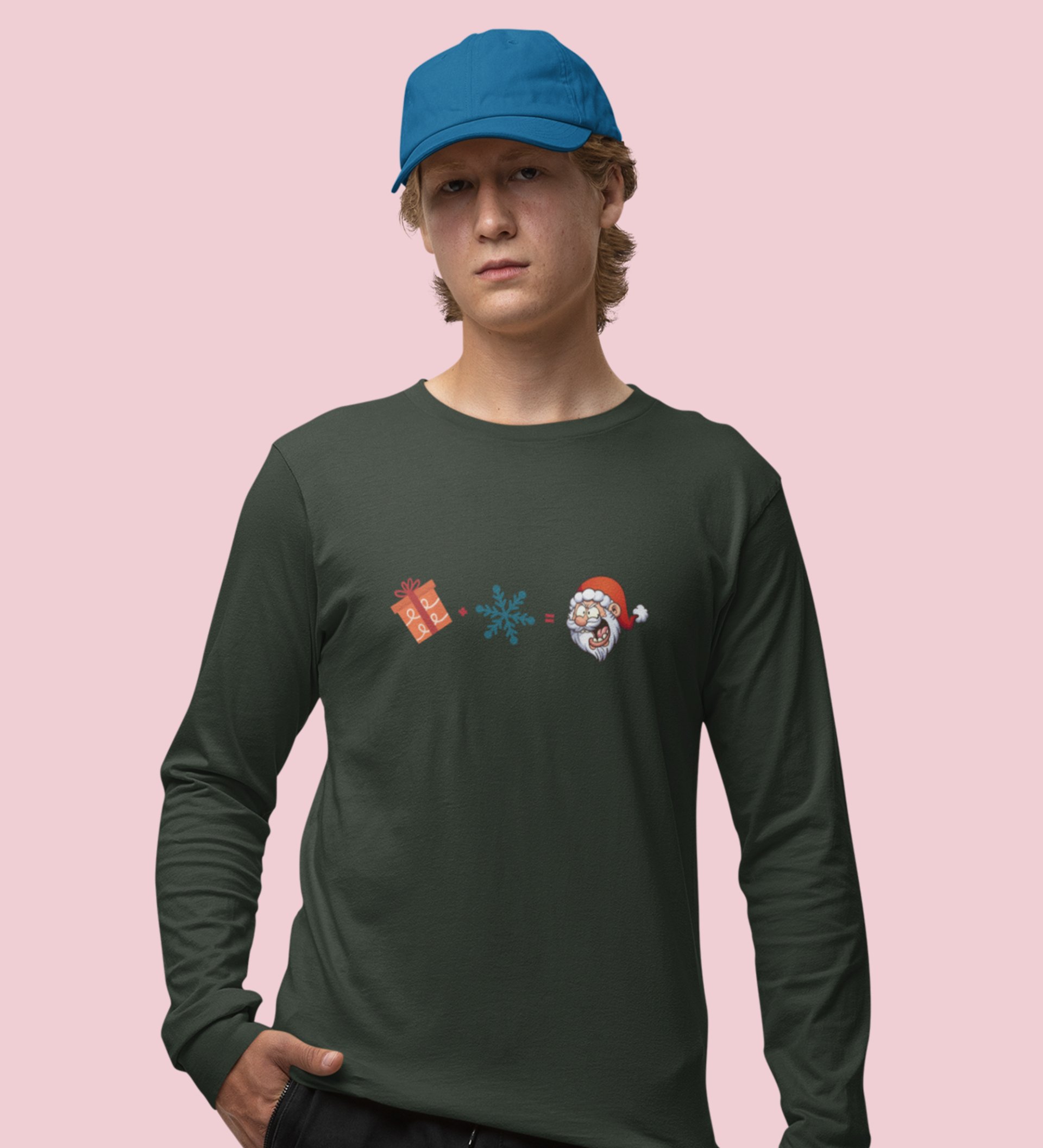 Gift + Winter = Santa: Unique DesignedFull Sleeve T-shirt Green Best Gift For Christmas Eve