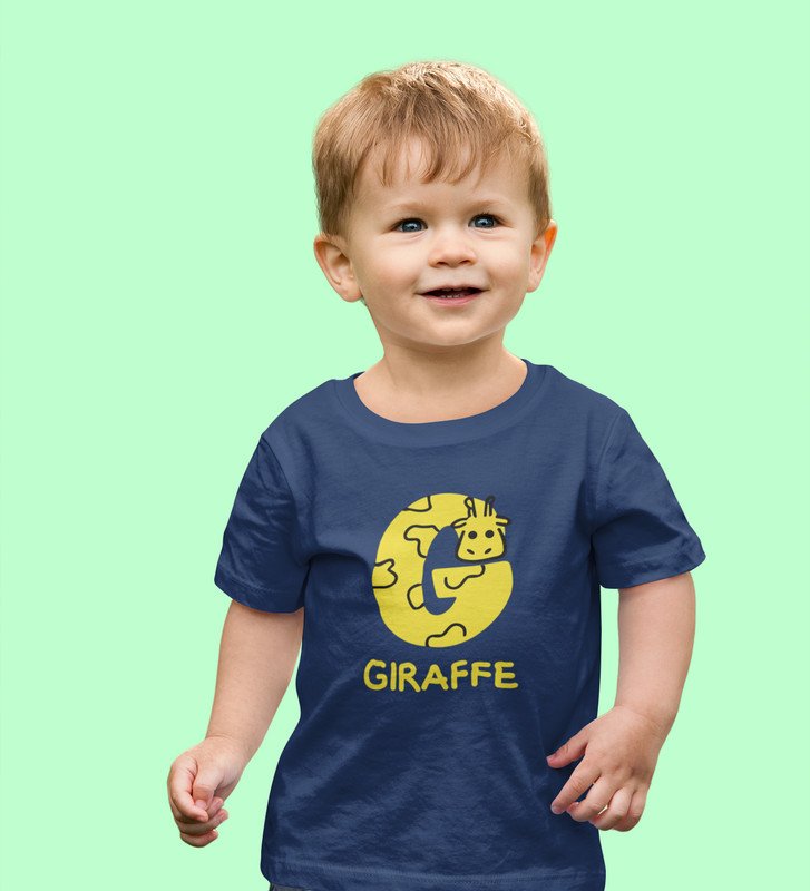 Giraffe, Boys Printed Crew Neck tshirt (Navy blue)