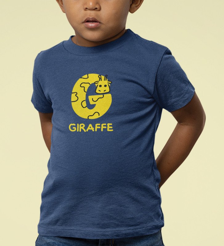 Giraffe, Boys Printed Crew Neck Tshirt (Navy blue)