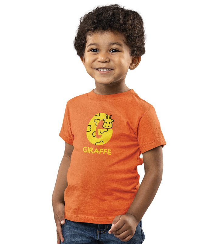 Giraffe, Boys Printed Crew Neck Tshirt (Orange)