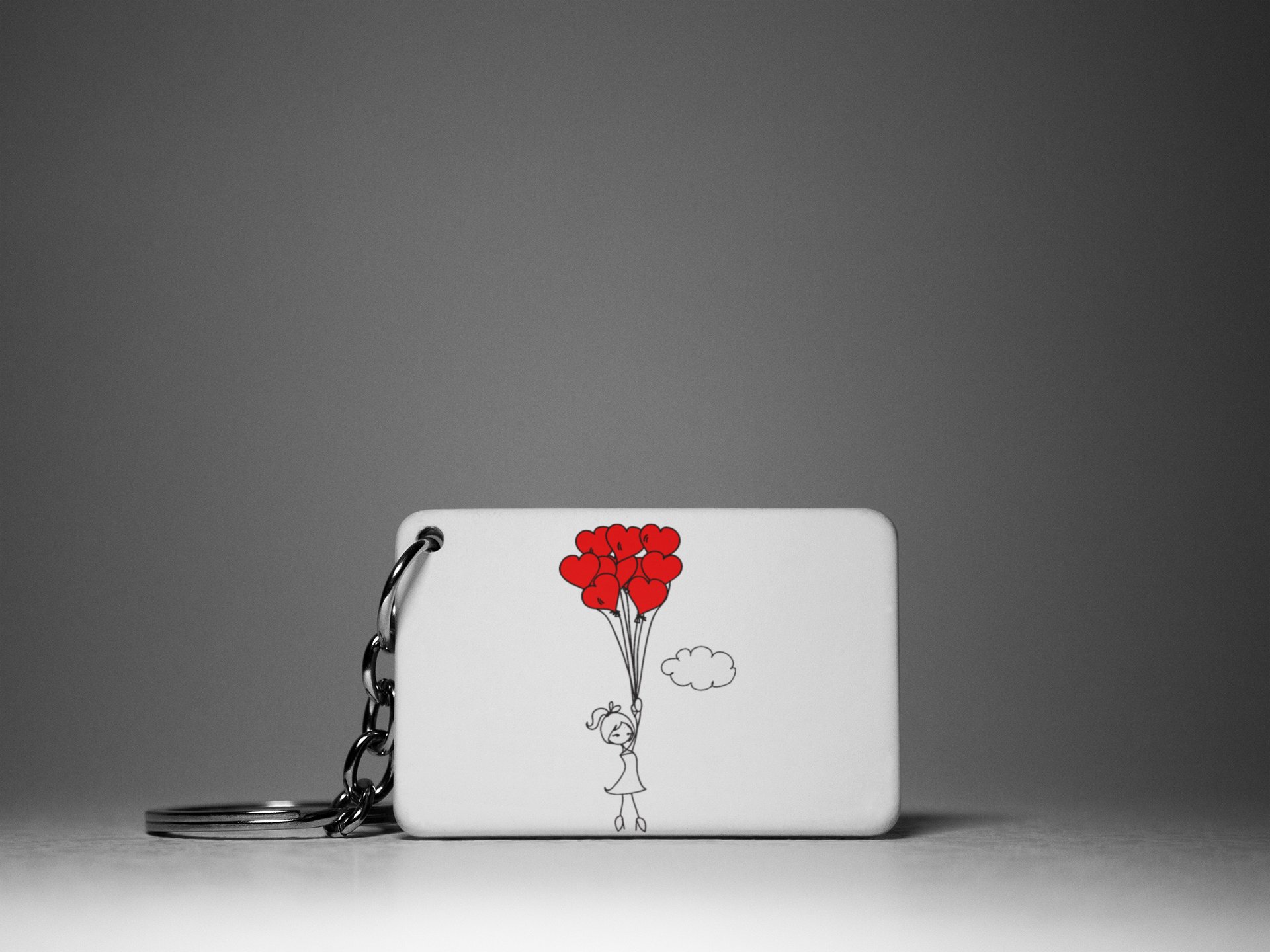 Girl And Boy Holding Heart Shape Balloons- Couple Keychain -White -Valentine's Special Keychains(Pack Of 2)