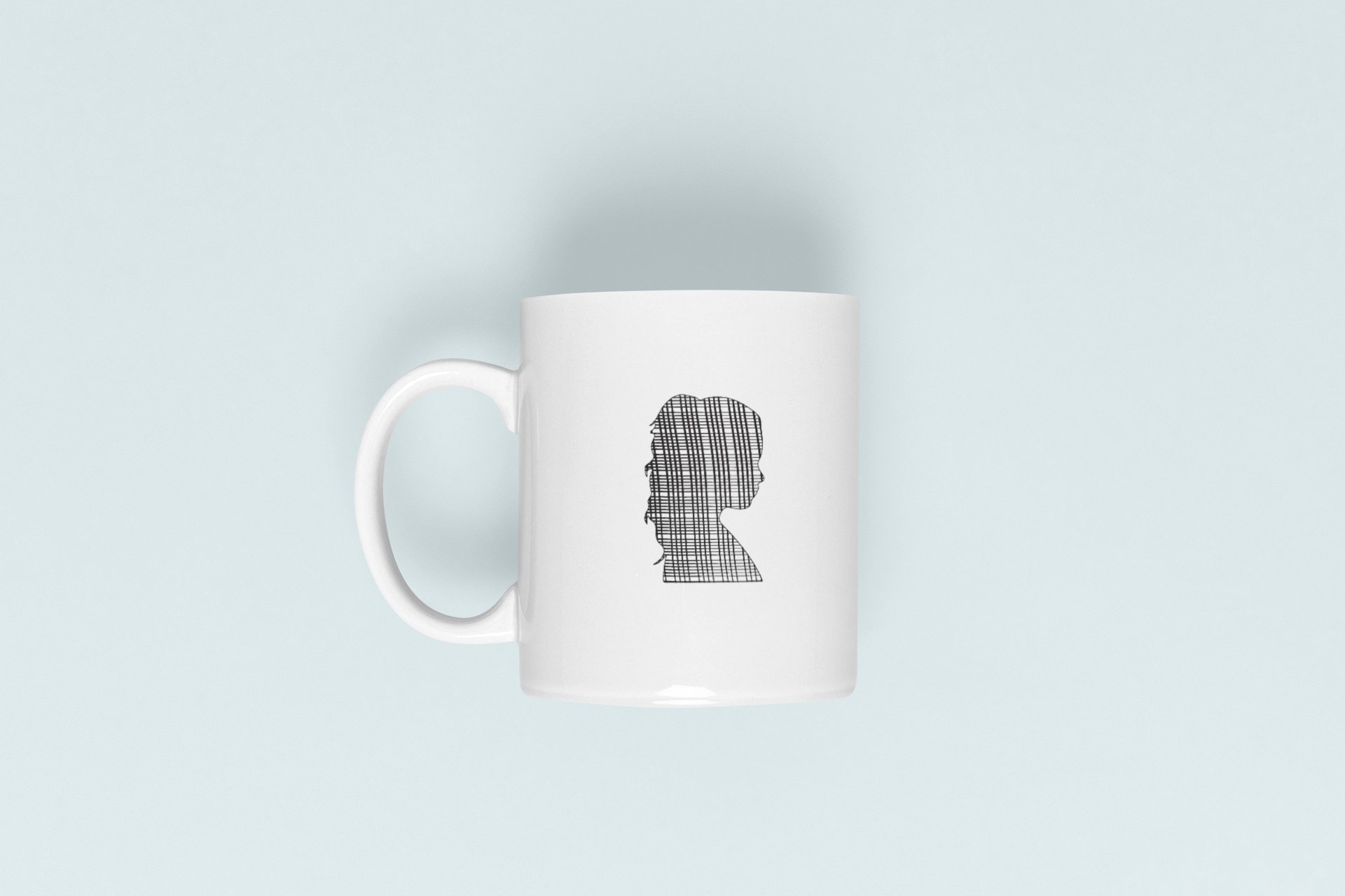 Girl Silhoutte - line art themed printed ceramic white coffee and tea mugs/ cups