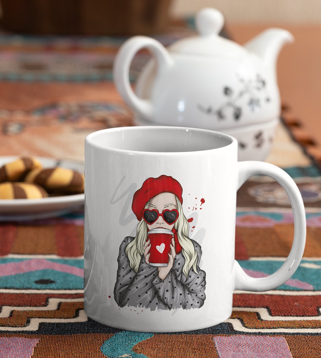 Girl with coffee container - animation themed printed ceramic white coffee and tea mugs/ cups for animation lovers