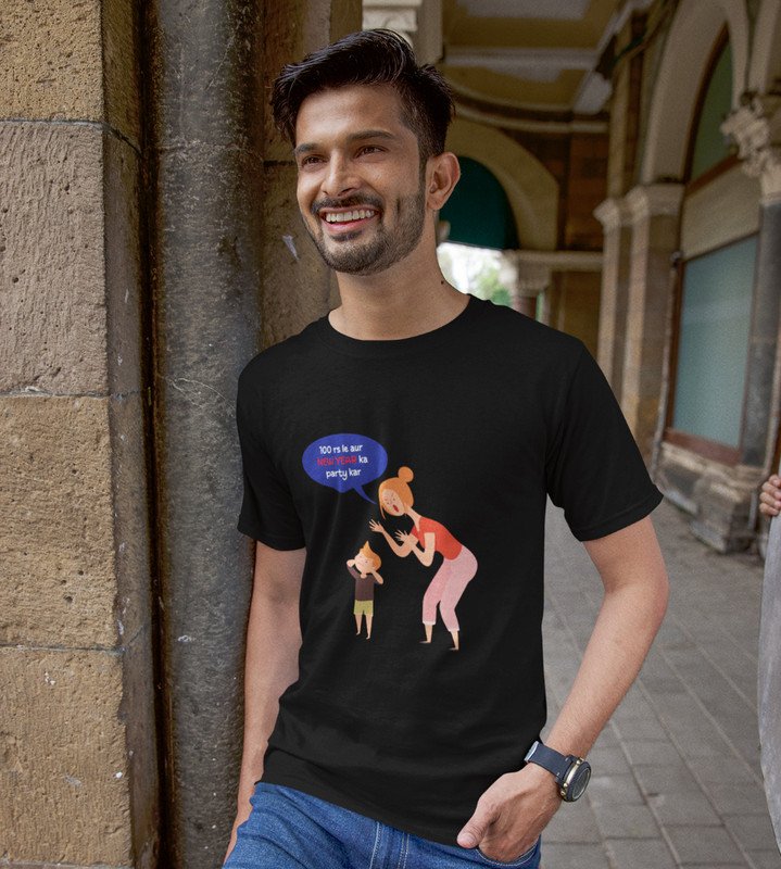 Go Enjoy Your Party BlackPrinted T-shirt For Mens On New Year Theme