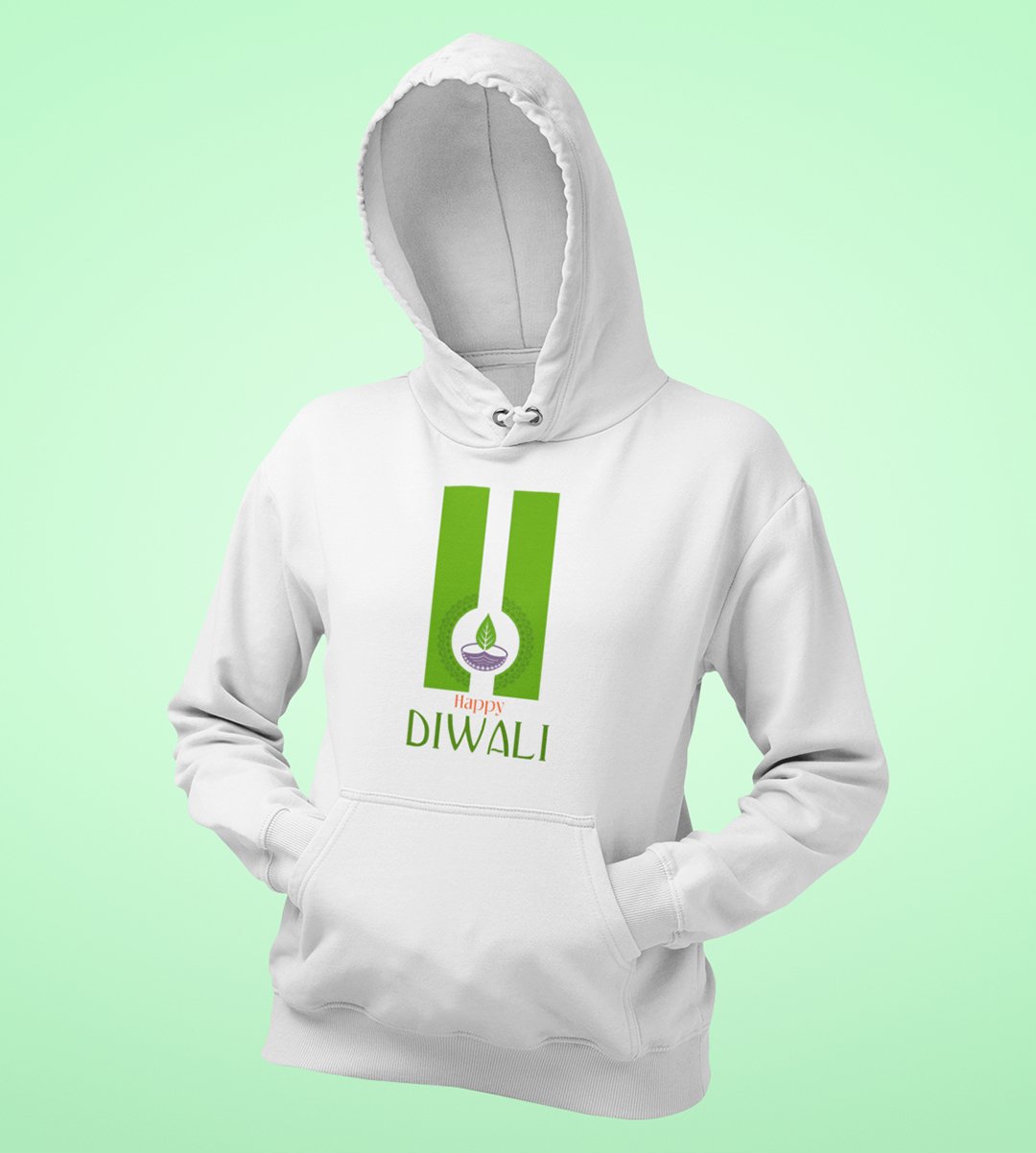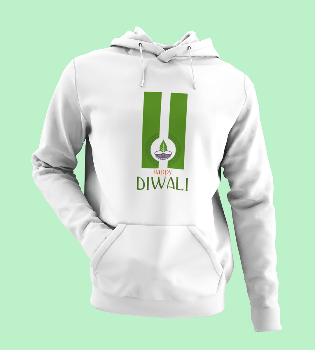 Go green diwali printed diwali themed White Hoodie specially for diwali festival