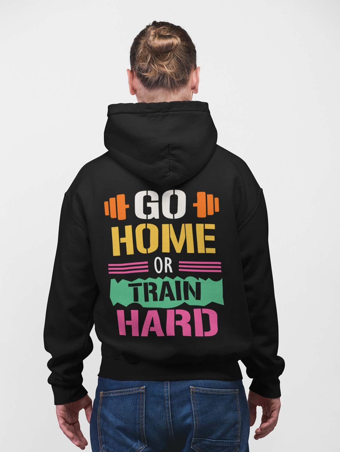 Go Home Or Train Hard, (BG White, Yellow, Black & Pink) printed artswear black hoodies for winter casual wear specially for Men
