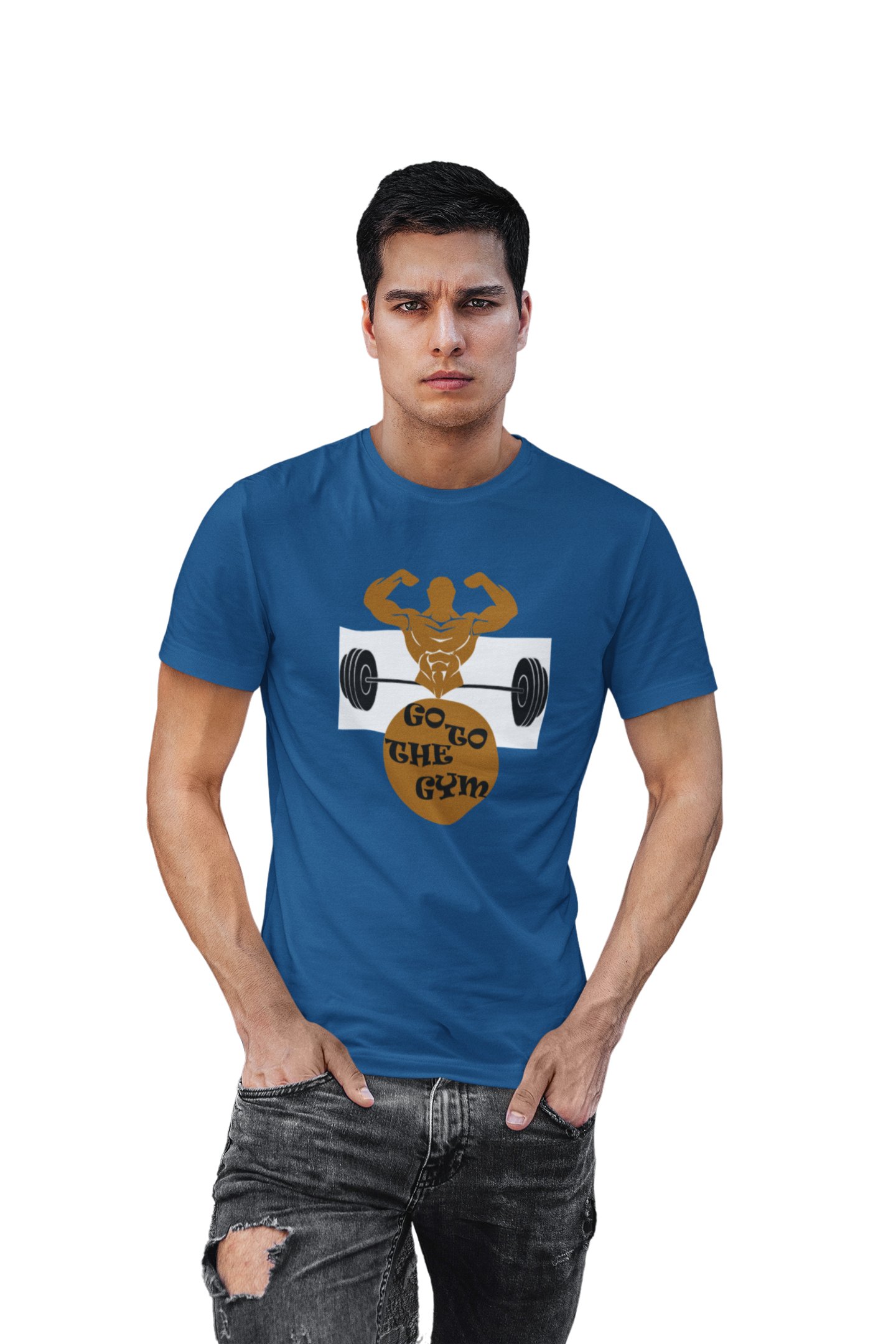Go To The Gym, (BG Muscle Man Brown), Round Neck Gym Tshirt (Blue Tshirt) - Clothes for Gym Lovers - Suitable for Gym Going Person - Foremost Gifting Material for Your Friends and Close Ones
