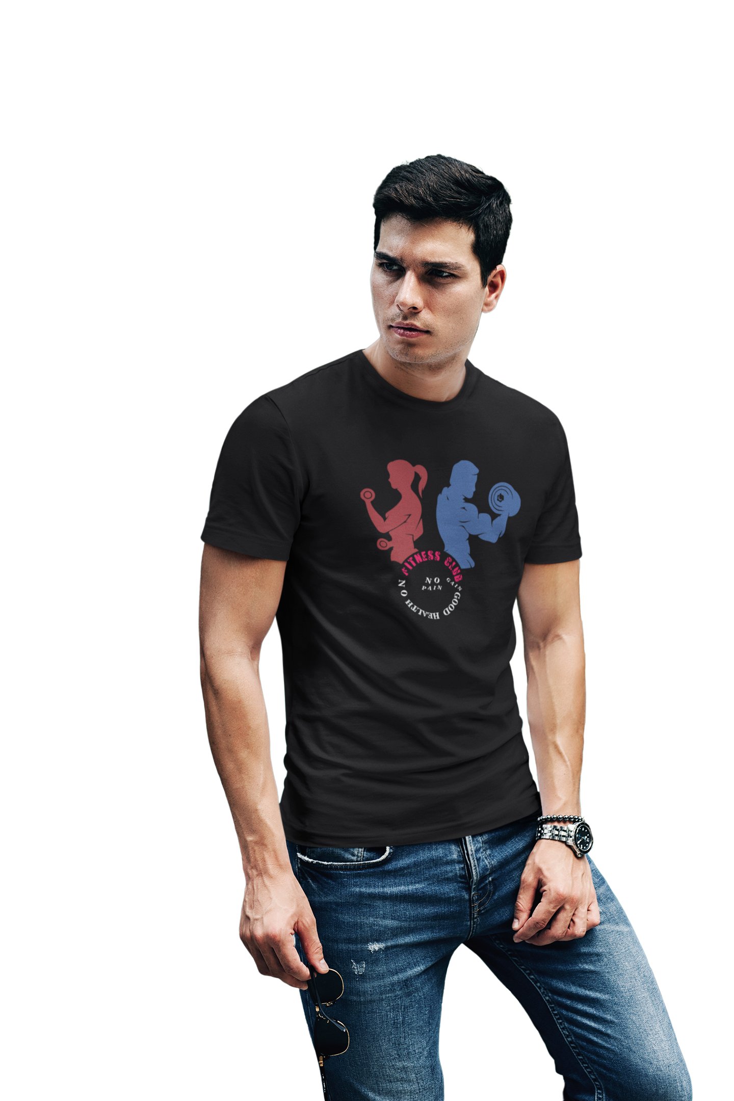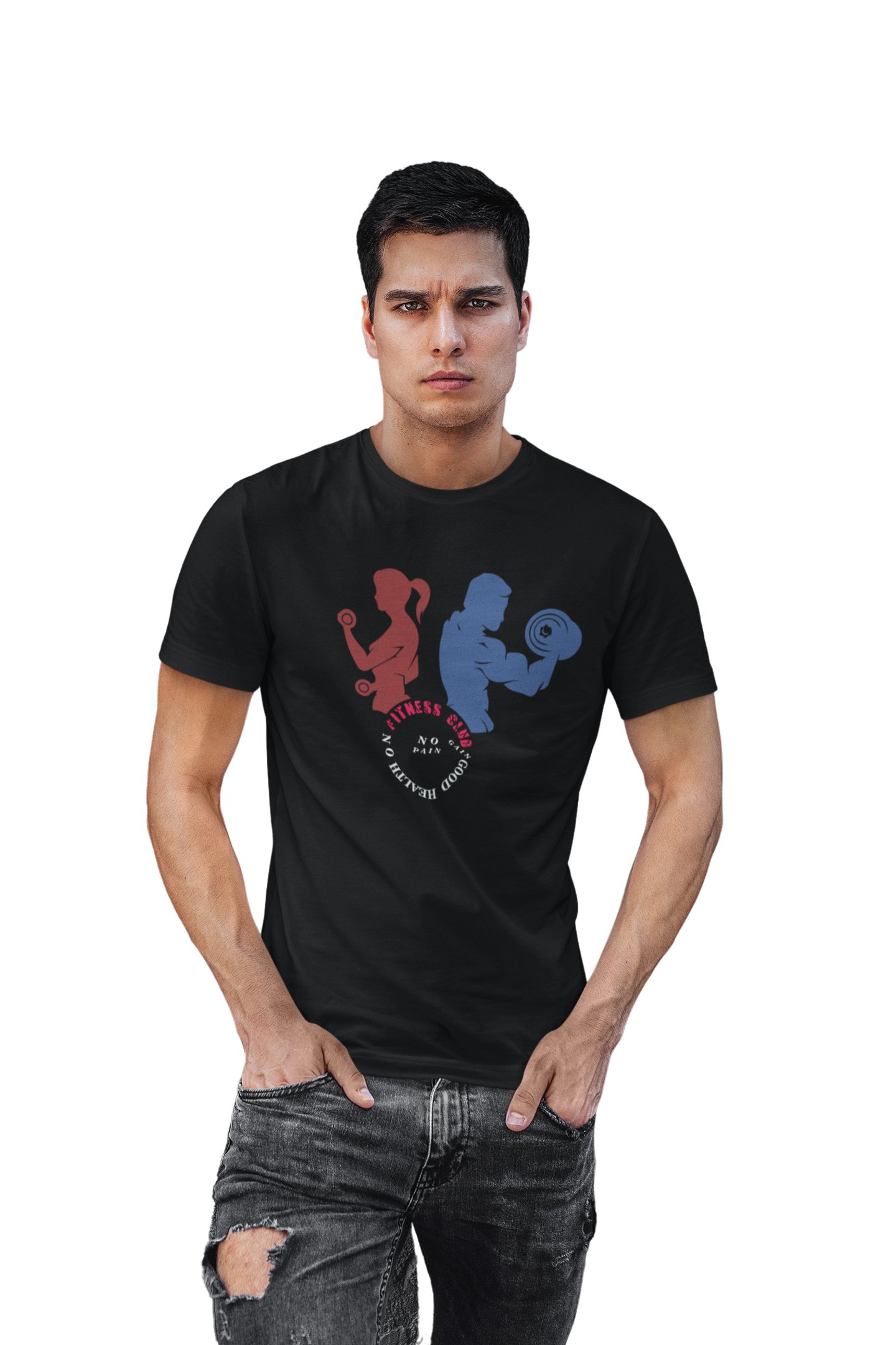 Good Health On, Fitness Club, No Pain, No Gain, Round Neck Gym Tshirt (Black Tshirt) - Clothes for Gym Lovers - Suitable for Gym Going Person - Foremost Gifting Material for Your Friends and Close Ones