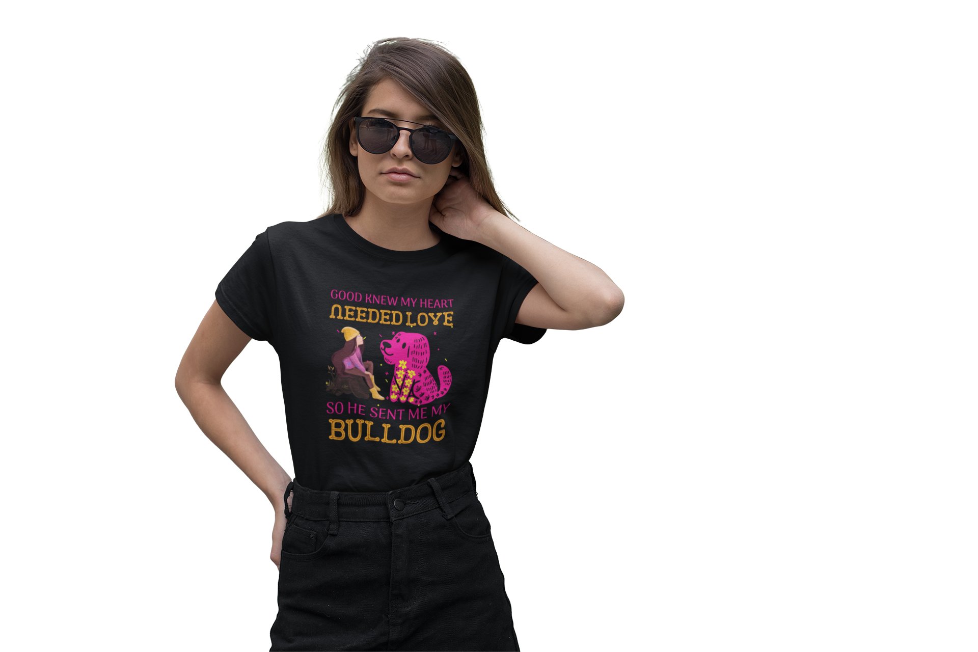 Good knew my heart needed love so he sent me my bulldog -Black-printed cotton t-shirt - comfortable, stylishh