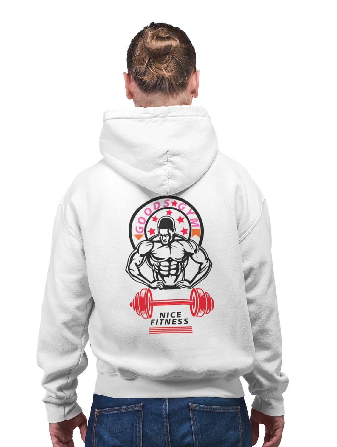 Goods Gym, Nice Fitness printed artswear white hoodies for winter casual wear specially for Men