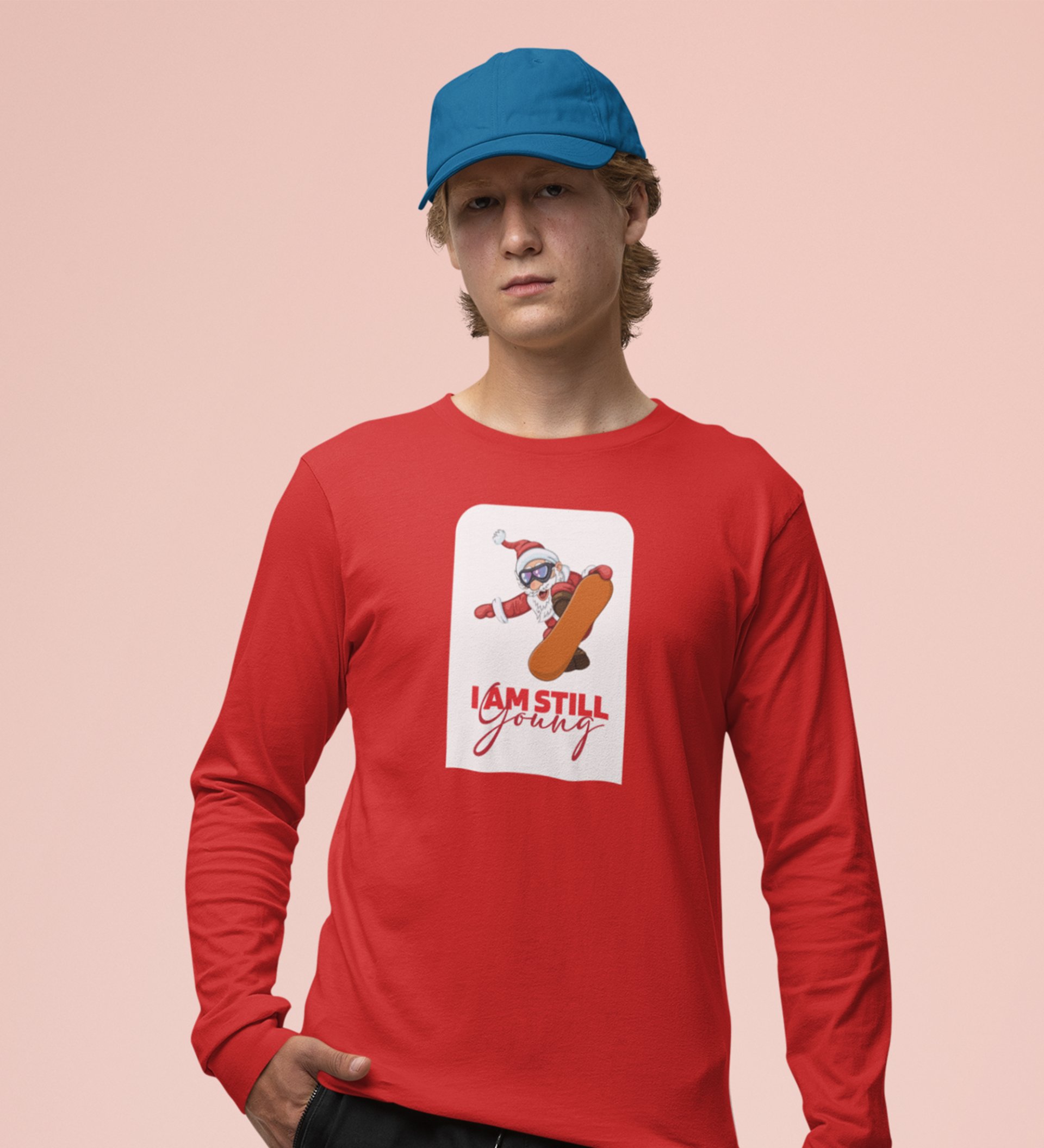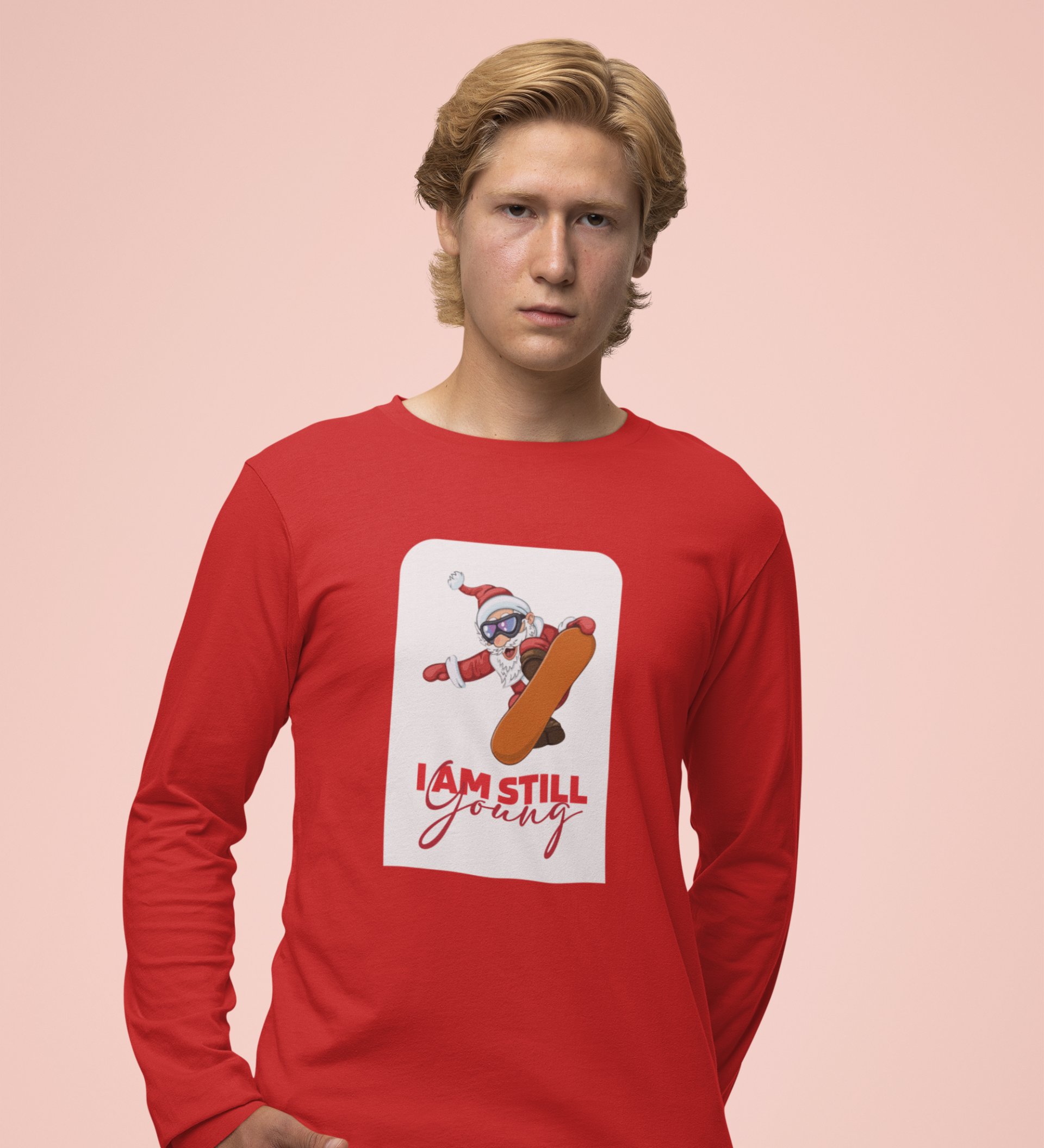 Goofy & Young Santa:Best DesignerFull Sleeve T-shirt Red Perfect Gift For Boys Girls