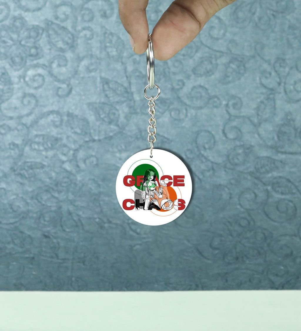 Grace in Chaos Artistic Attitude Theme: Printed Round Keychain Pack of 2