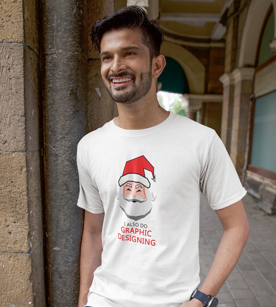 Graphic Lover Santa: Good Vibes Printed T-shirt (White) Unique Gift For New Year Boys Girls