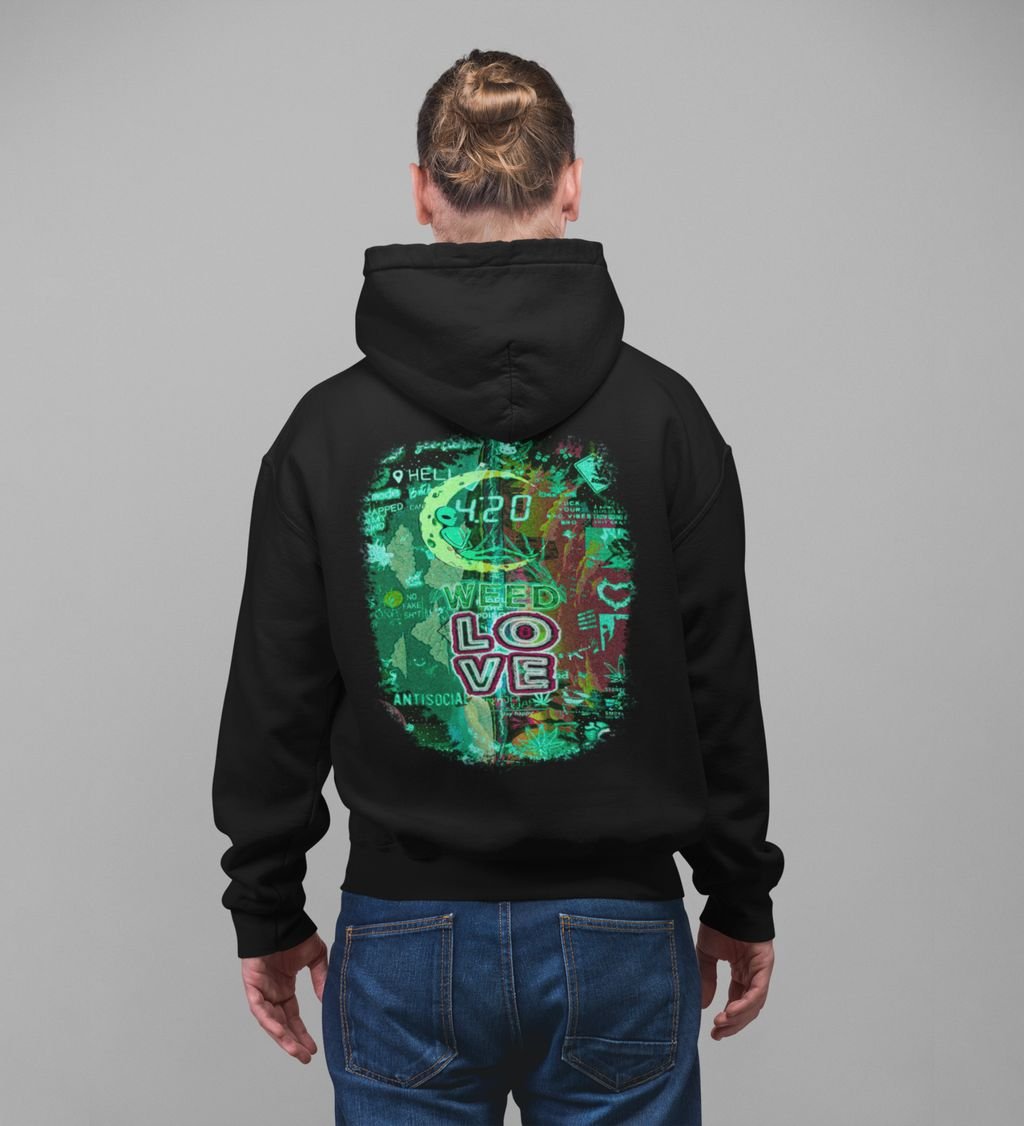 Green Love Where Comfort Meets Conscious Living Black Cotton Printed Hoodie For Men