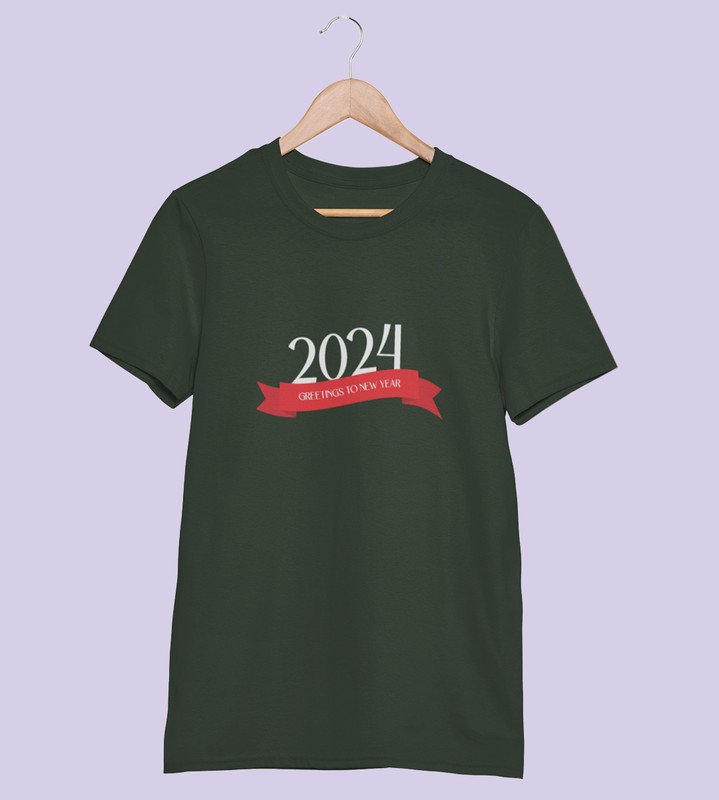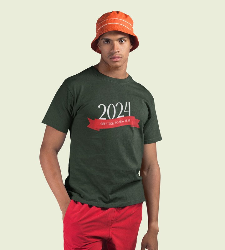 Greetings For New YearGreen New Year Printed T-shirt For Mens