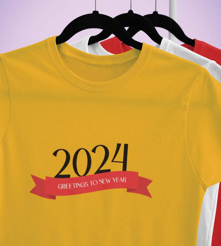 Greetings For New YearYellow New Year Printed T-shirt For Mens