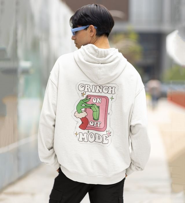 Grinch in Relaxed On Off Mode Embodying Fun and Lighthearted Spirit Printed White Cotton Hoodie