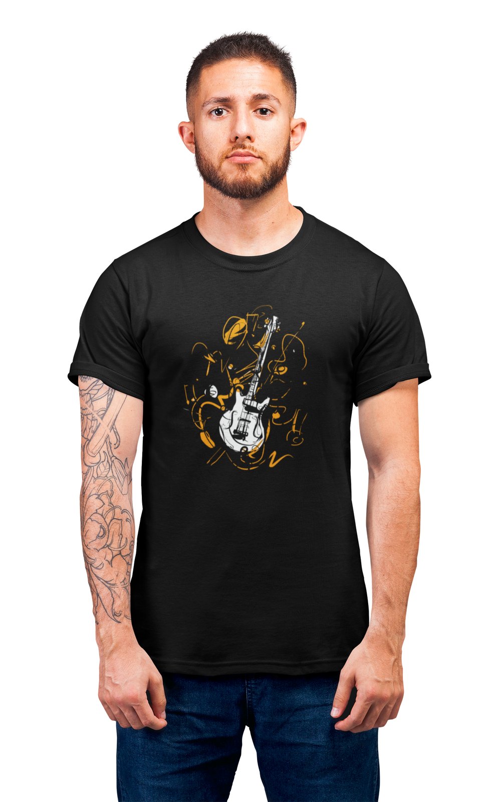 Guitar -Black- Men's - printed T-shirt - comfortable round neck Cotton