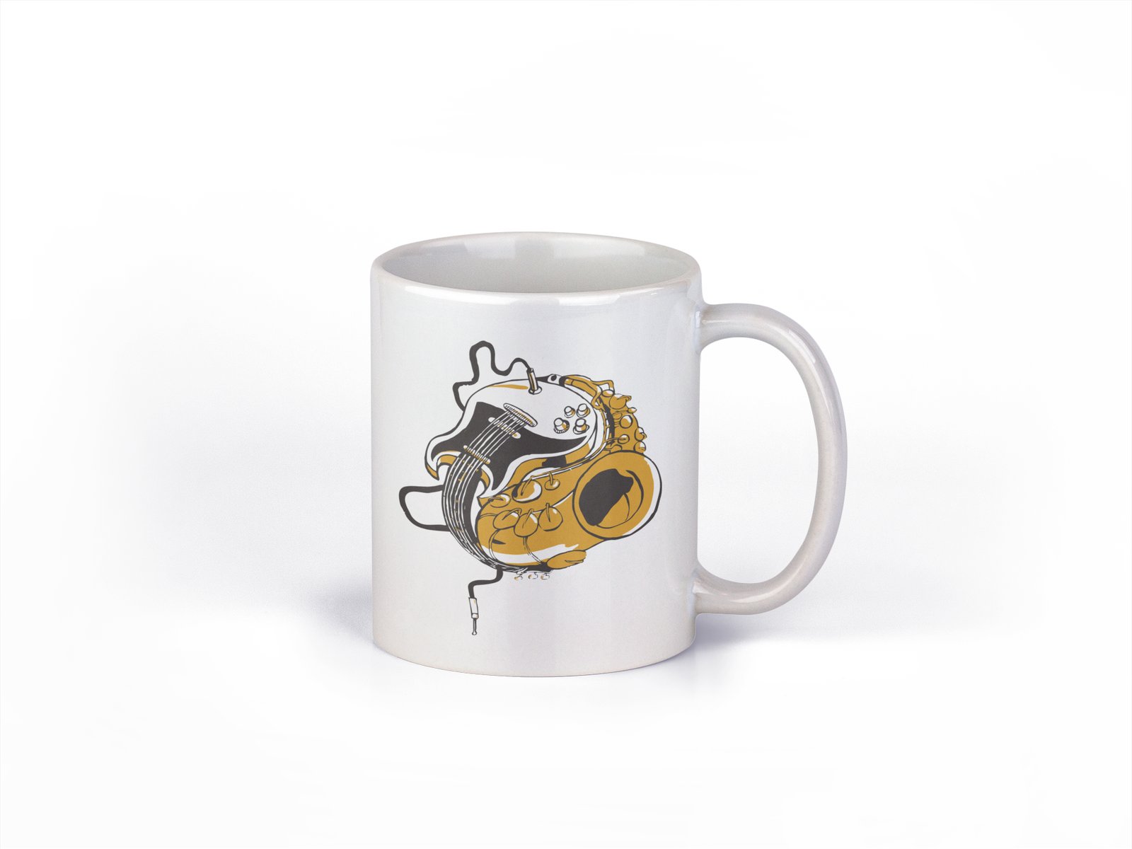 Electric Guitar- music themed printed ceramic white coffee and tea mugs/ cups for music lovers