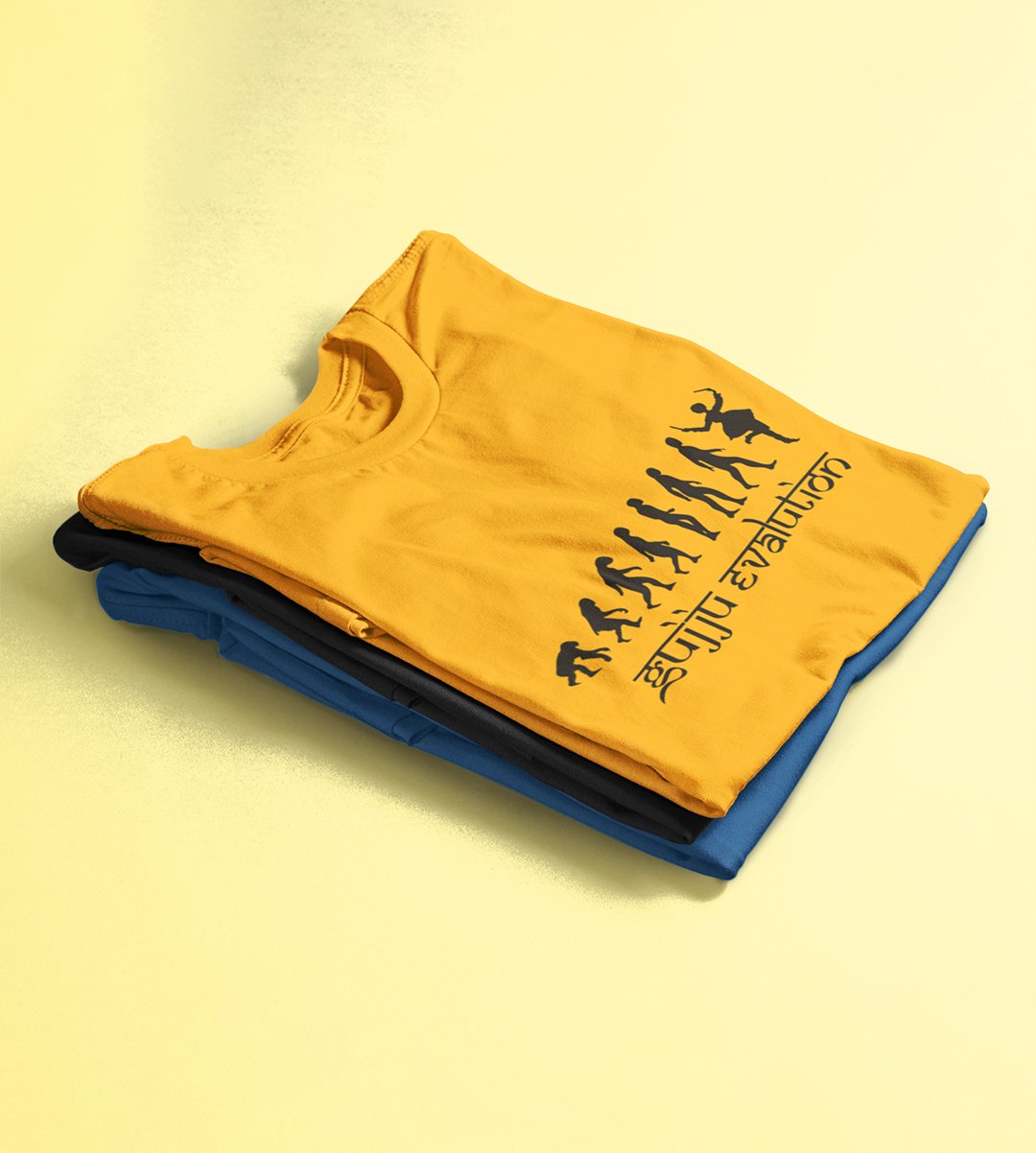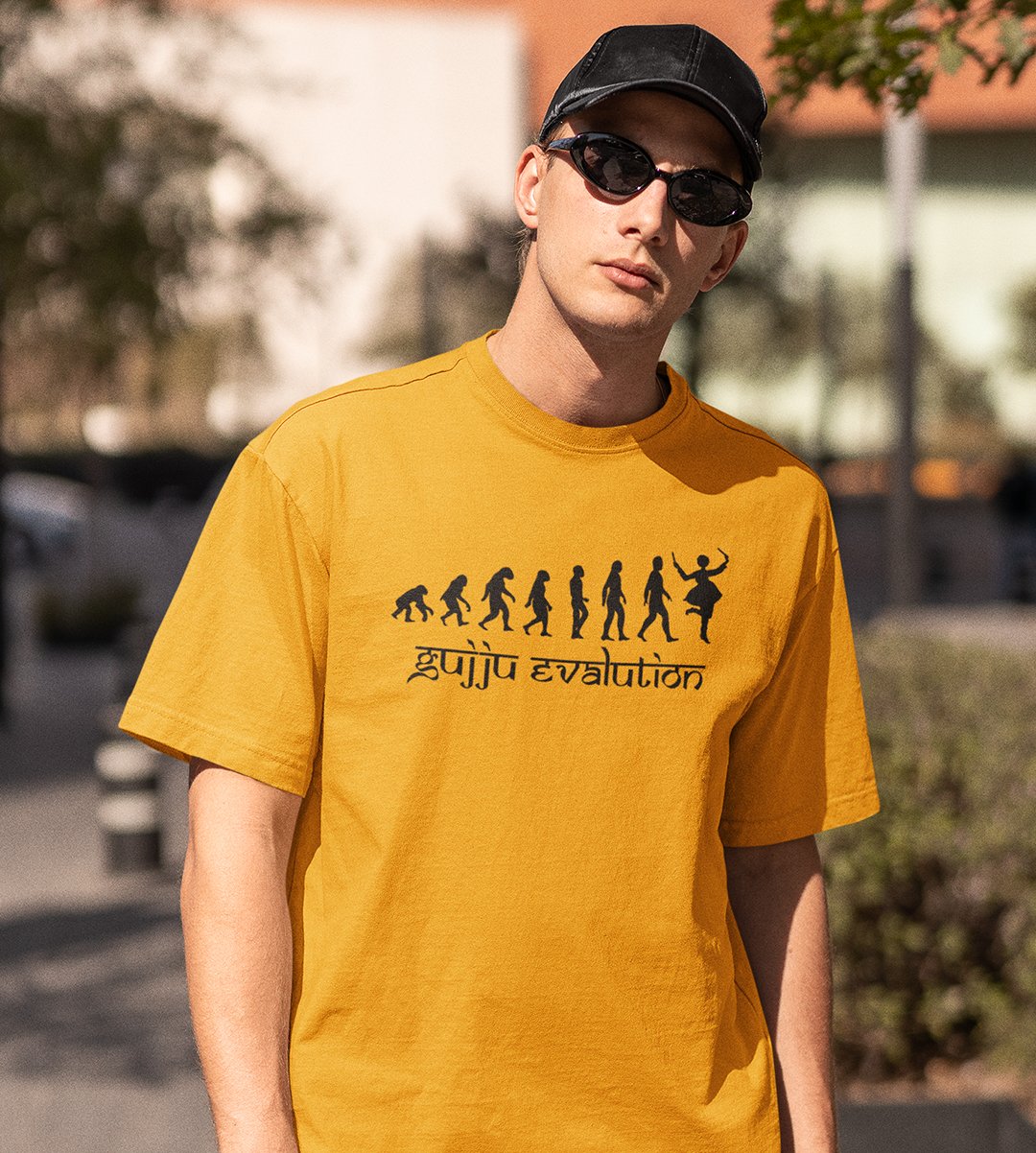 Gujju evaluation printed unisex adults round neck cotton half-sleeve yellow tshirt specially for Navratri festival/ Durga puja