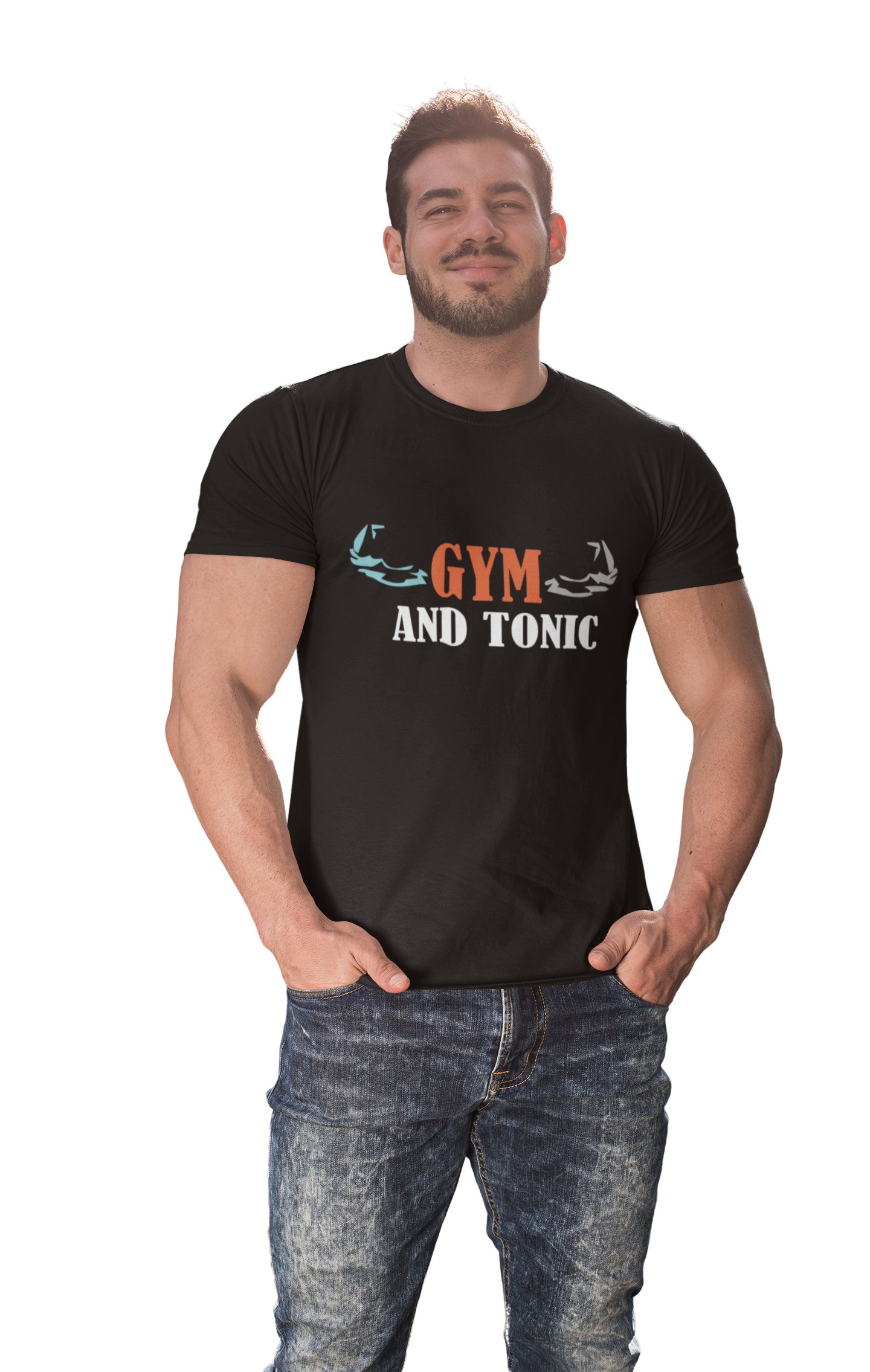 Gym and Tonic, Round Neck Gym Tshirt (Black Tshirt) - Clothes for Gym Lovers - Suitable for Gym Going Person - Foremost Gifting Material for Your Friends and Close Ones