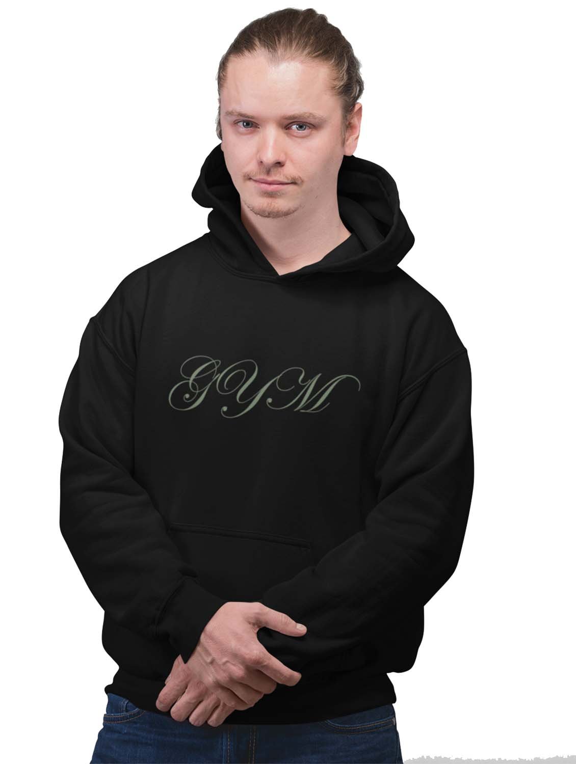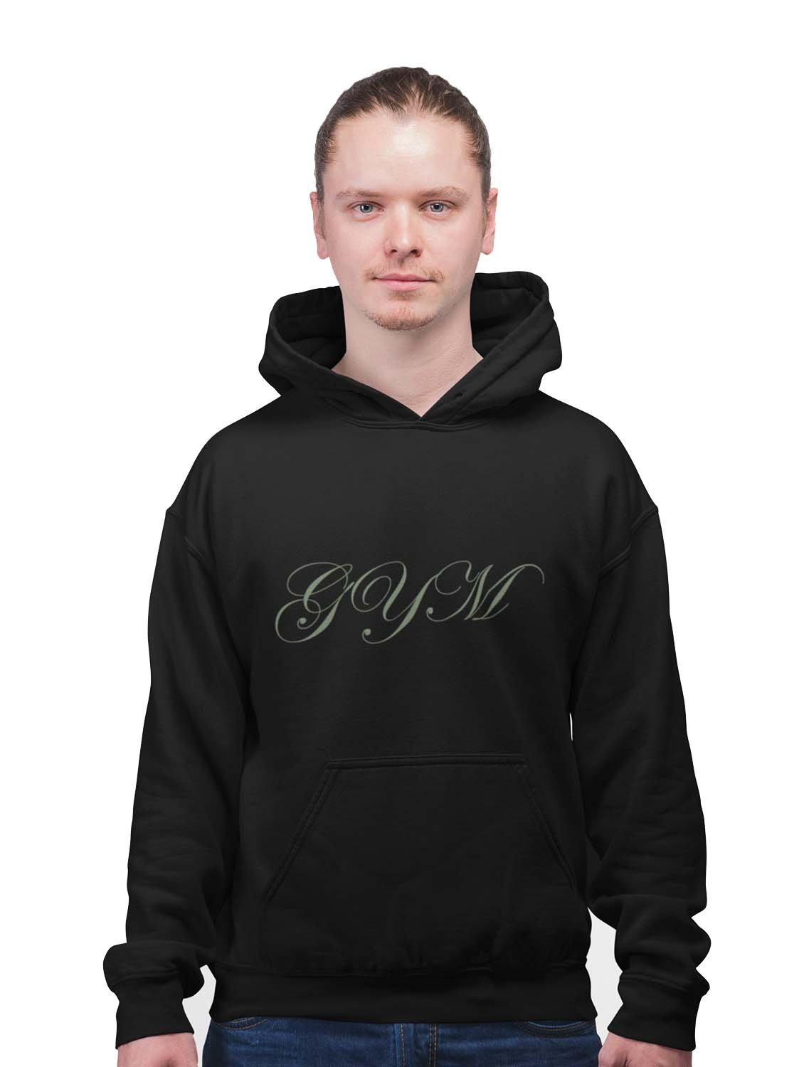Gym, (Cursive Handwriting)printed artswear black hoodies for winter casual wear specially for Men