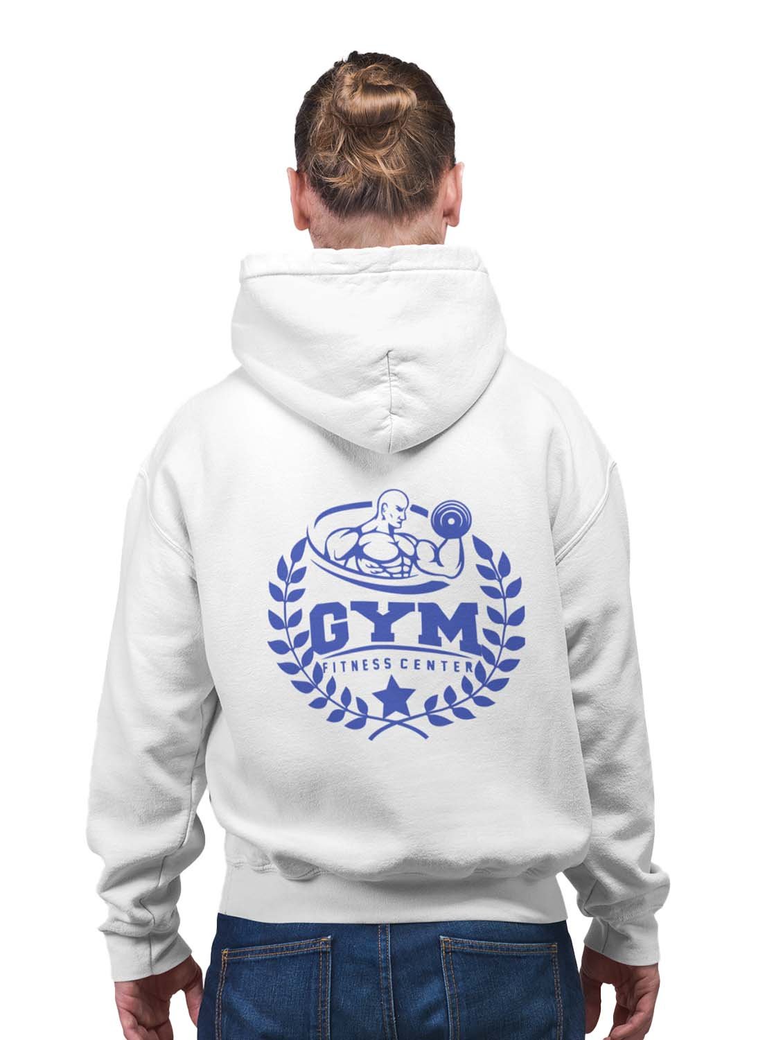 Gym, Fitness Center, Blue Leaves Inside The Circle printed artswear white hoodies for winter casual wear specially for Men