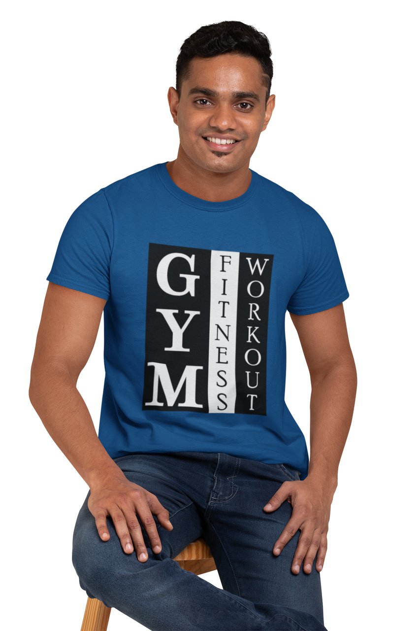 Gym, Fitness, Workout, Round Neck Gym Tshirt (Vertically) (Blue Tshirt) - Clothes for Gym Lovers - Suitable for Gym Going Person - Foremost Gifting Material for Your Friends and Close Ones