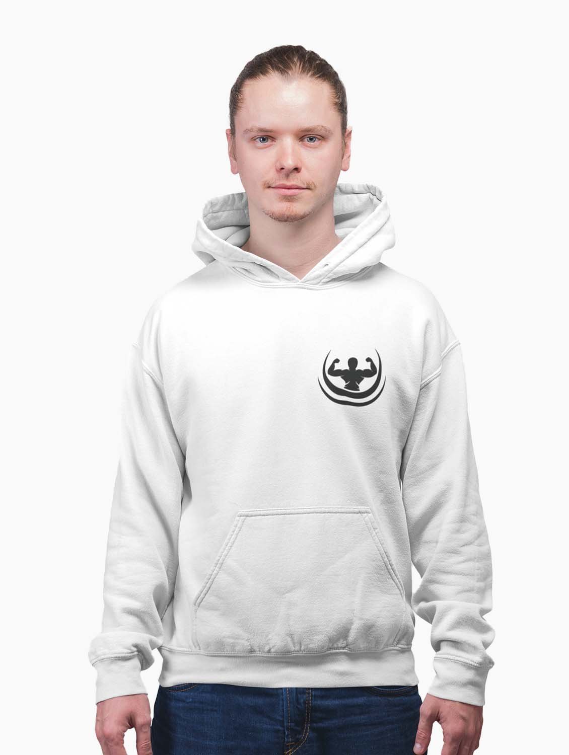 Gym, Fitness, Workout Vertical Text printed artswear white hoodies for winter casual wear specially for Men