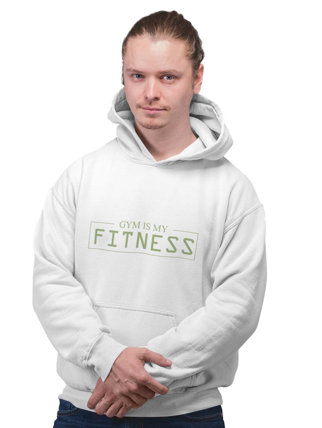 Gym is my Fitness, (BG Green) printed activewear white hoodies for winter casual wear specially for Men