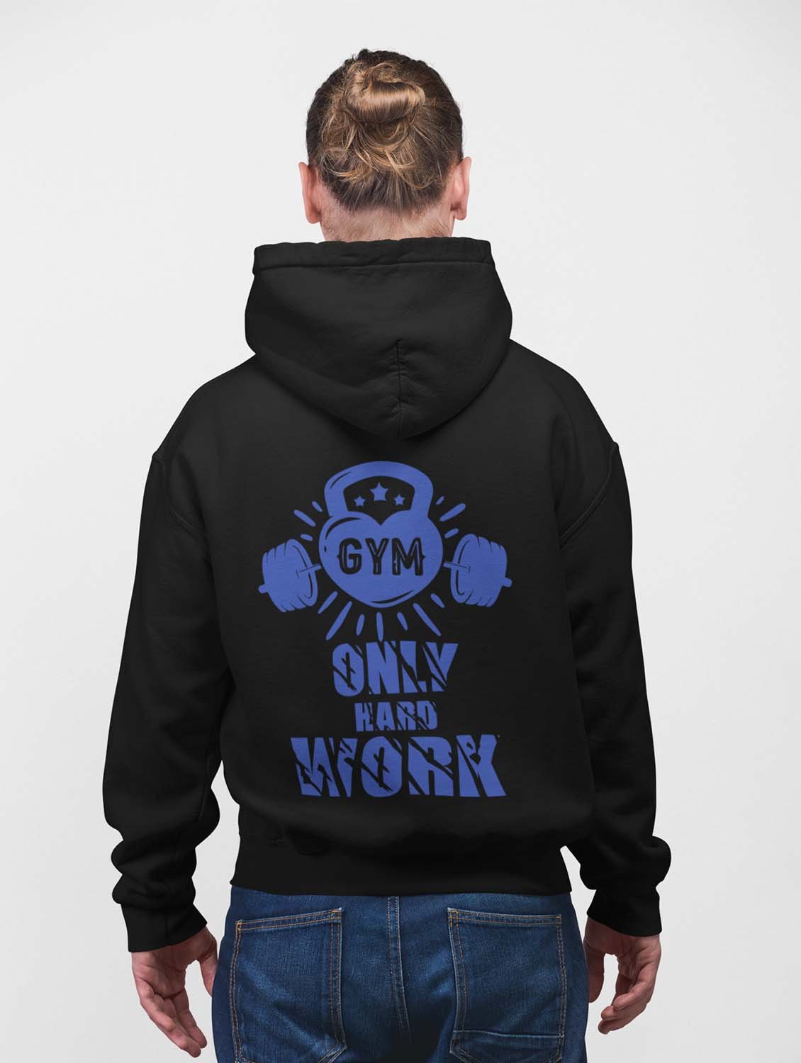 Gym, Only Hard Work, (BG Blue) printed artswear black hoodies for winter casual wear specially for Men