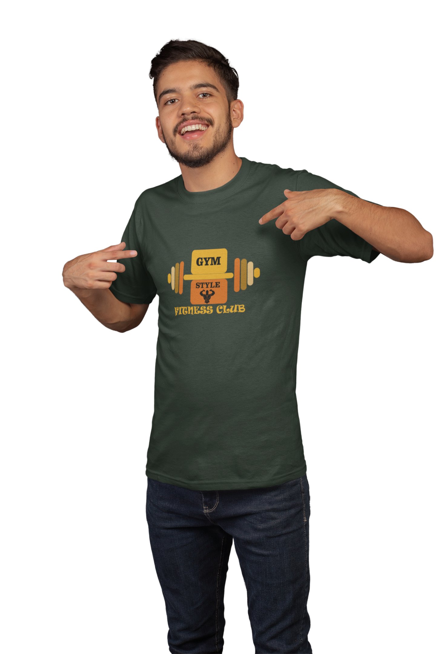 Gym Style, Fitness Club, (BG Orange and Yellow), Round Neck Gym Tshirt - Foremost Gifting Material for Your Friends and Close Ones