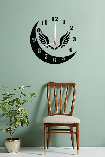Half Moon, Bird Wings Based Clock (Black C) - Suitable For The Decoration Of A House - Foremost Gifting Material for Your Friends, Relatives and Close Ones