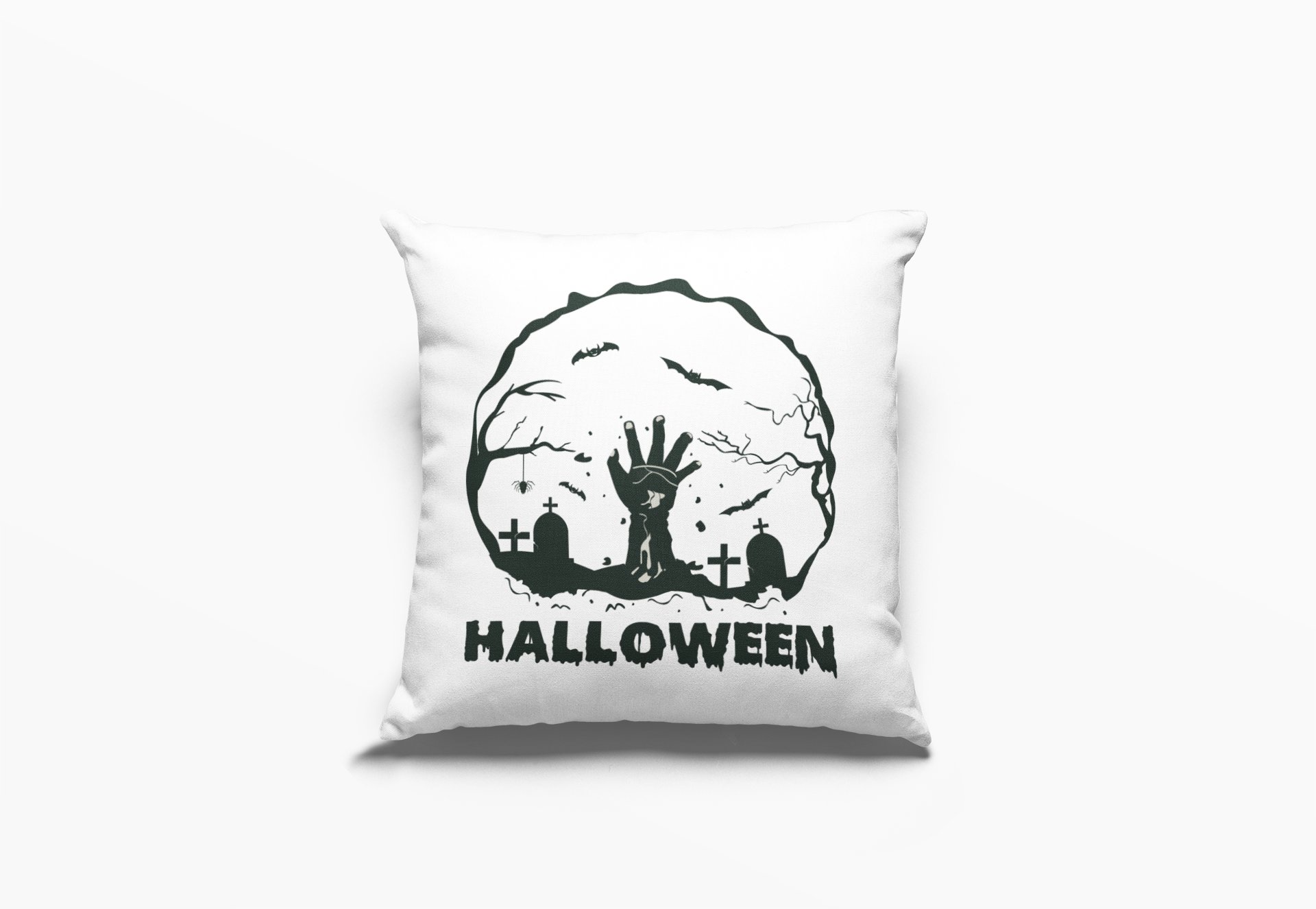Halloween, graveyard, (BG white) -Halloween Theme Pillow Covers (Pack Of 2)