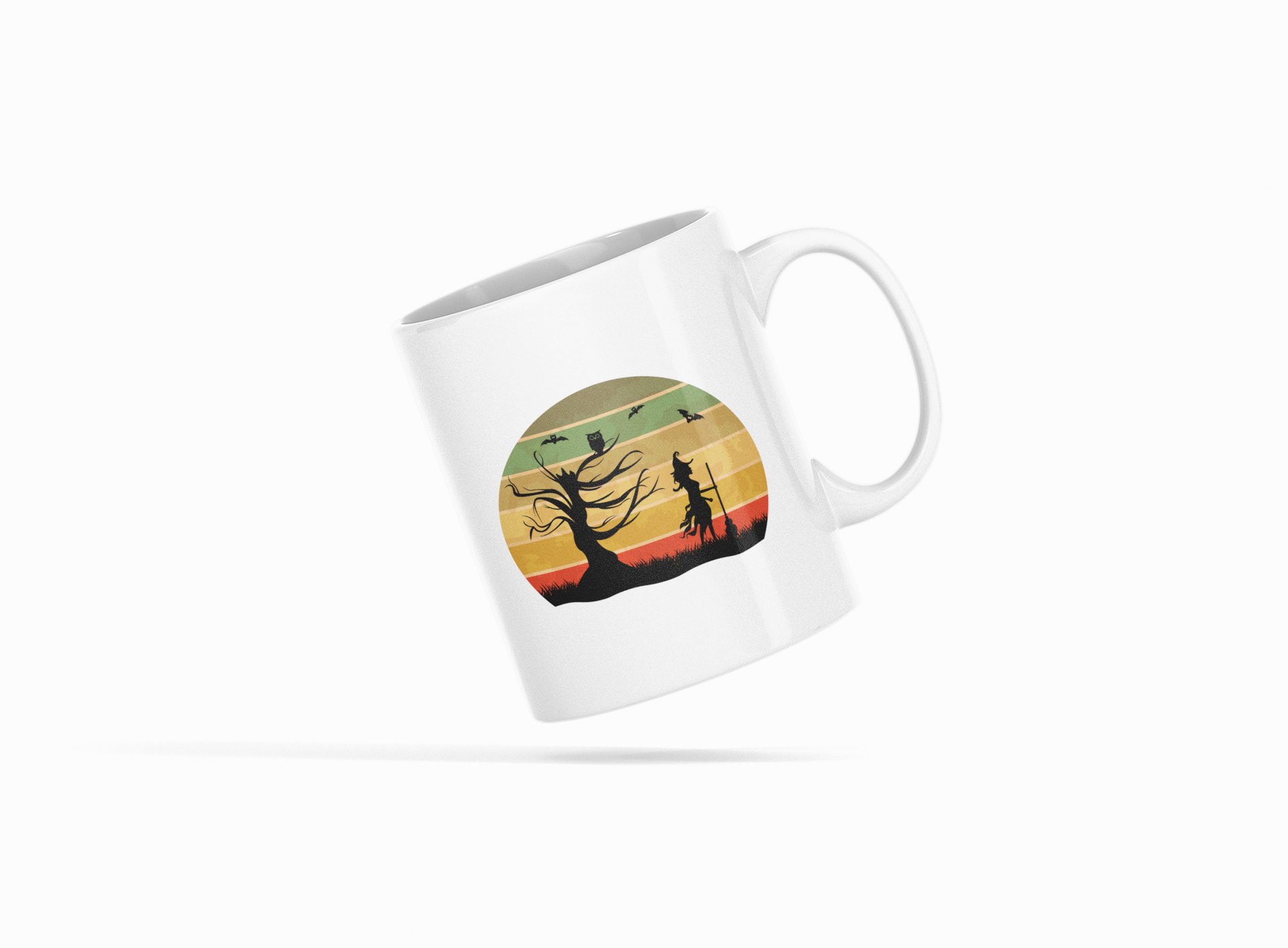 Halloween graveyard -Witch- text illustration graphic -Halloween Themed Printed Coffee Mugs