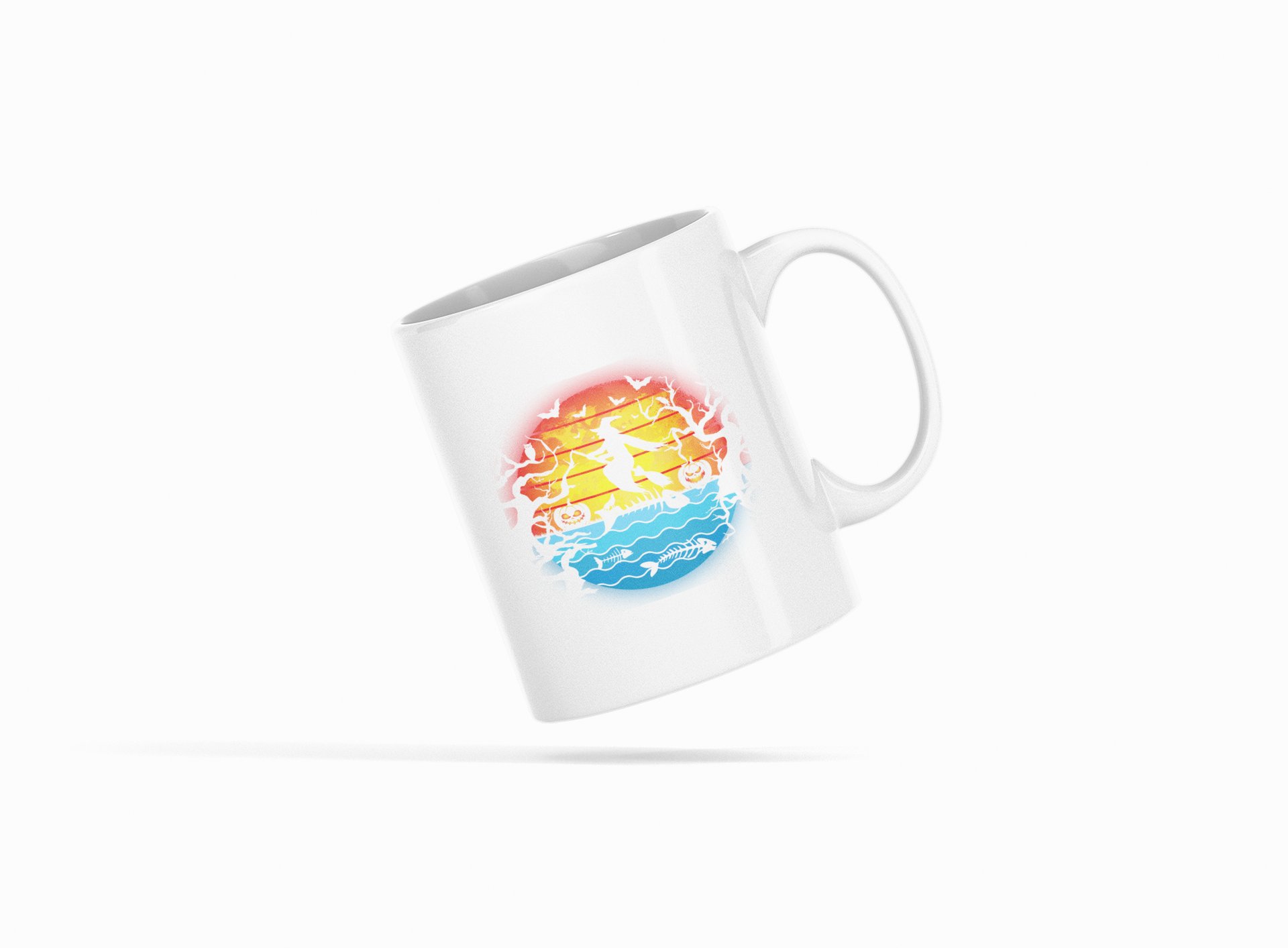 Halloween Scary Illustration -Flying Witch-Halloween Themed Printed Coffee Mugs