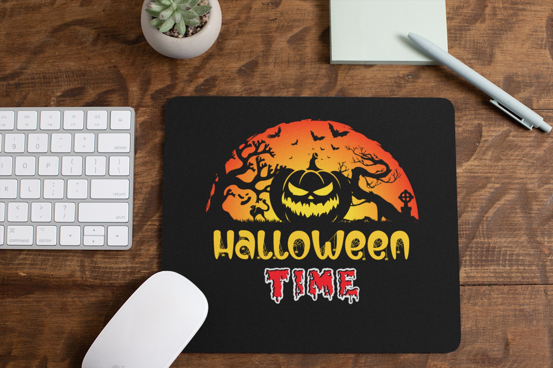 Halloween time Yellow Red Text-Scarry Pumpkin -Halloween Theme Mousepad