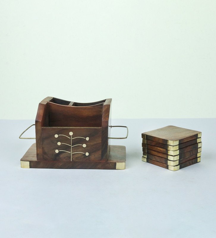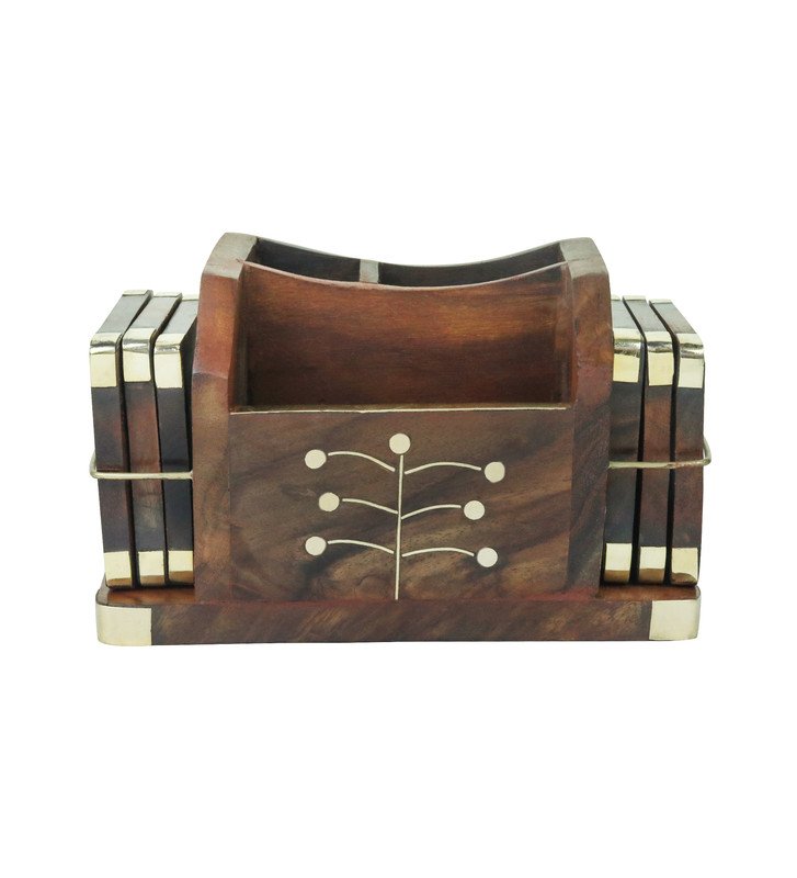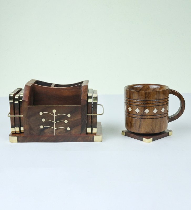 Hand Crafted Wooden Pen Holder With Coaster Holder For Tea And Coffee Set of 5