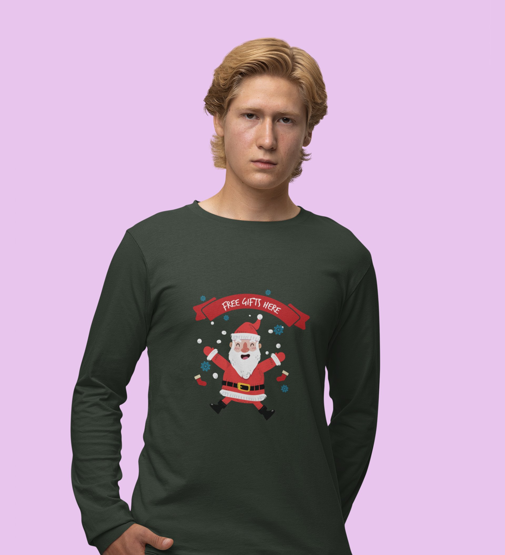 Happiest Santa Ever: Beautifully CraftedFull Sleeve T-shirt Green Perfect Gift For Kids
