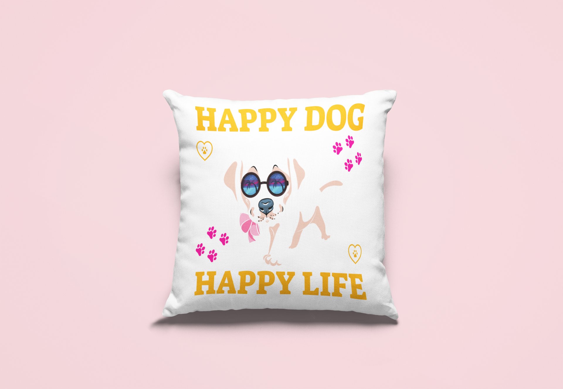 Happy dog happy life -Printed Pillow Covers For Pet Lovers(Pack Of Two)